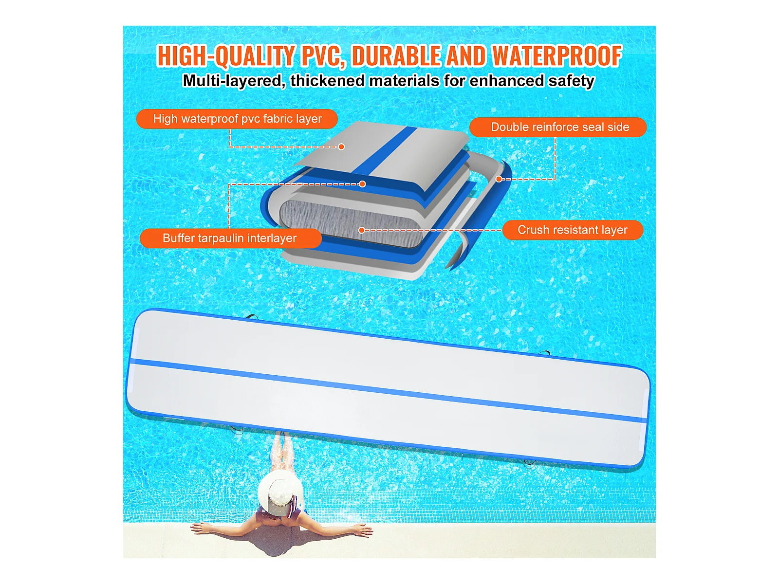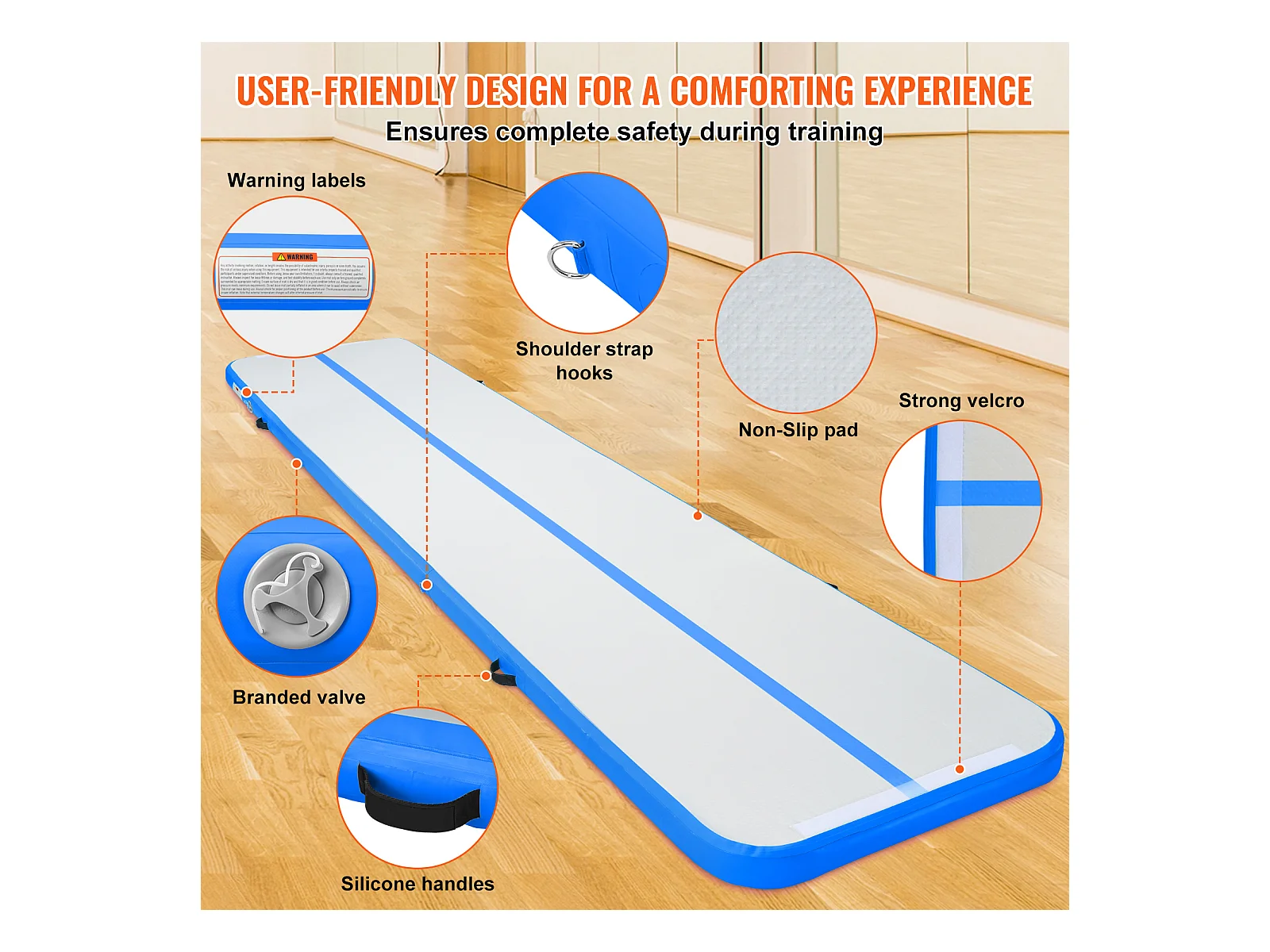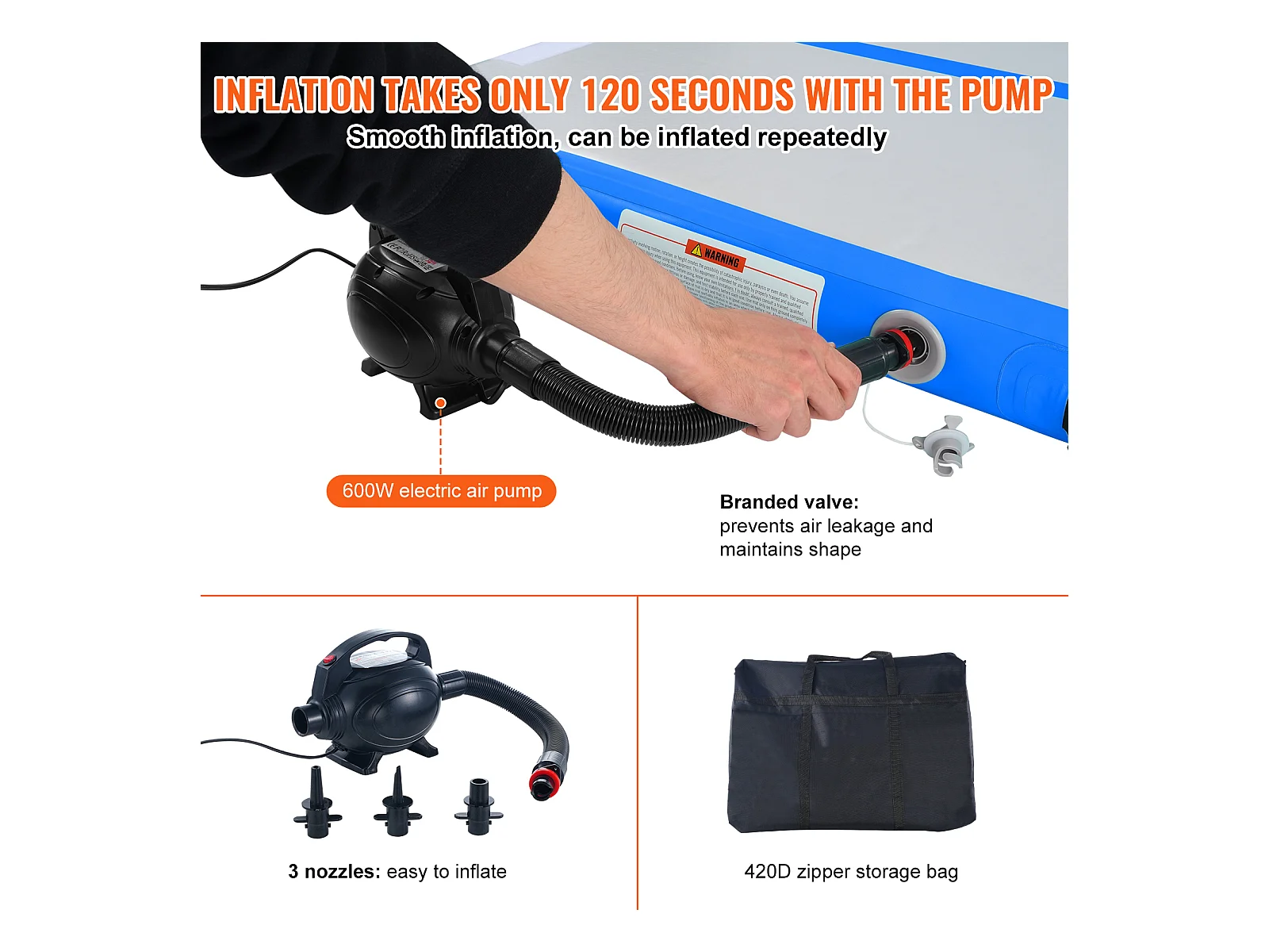 Tapis de Gymnastique SucceBuy 4m, Gonflable 10 cm Épaisseur, Bleu, avec Pompe Électrique