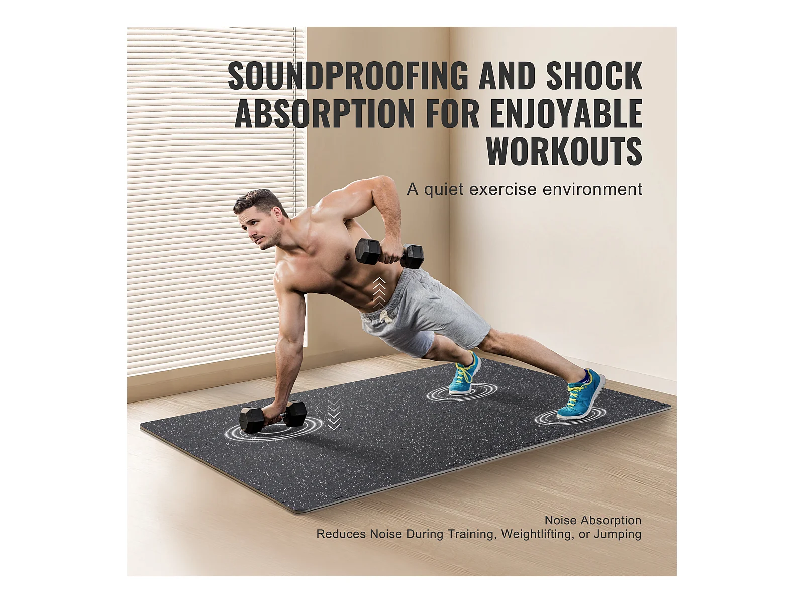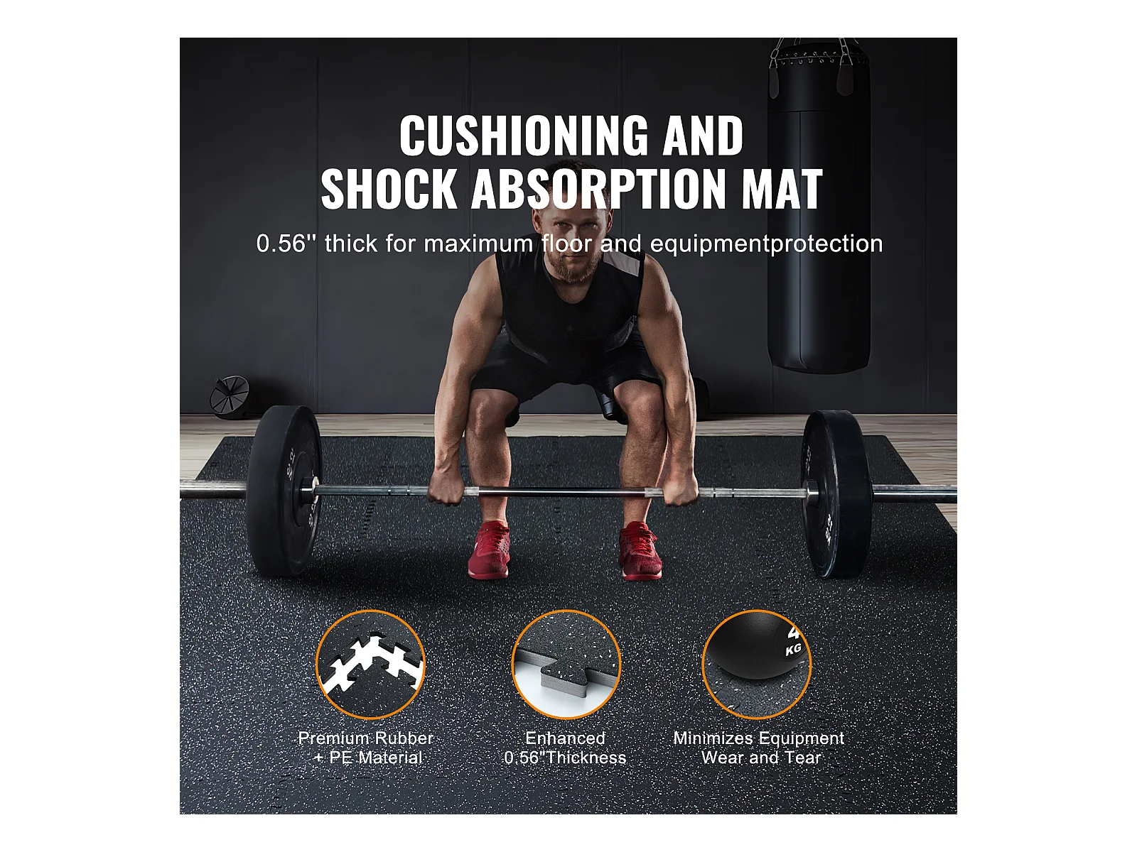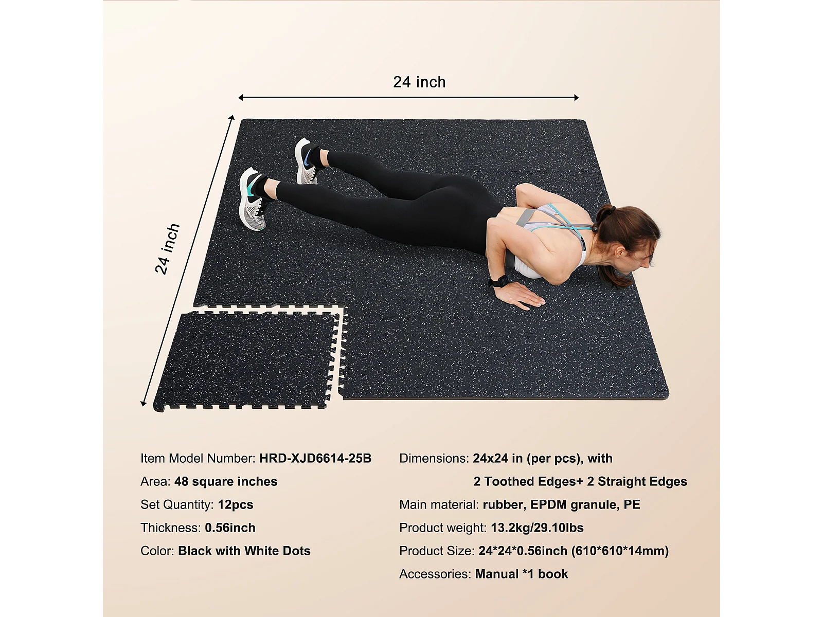 Tapis de Sol à Emboîtement, SucceBuy Tapis de Sol de Salle de Sport de 1.4 cm d'Épaisseur, 12 Carreaux, Dessus en Caoutchouc, Noir et Blanc