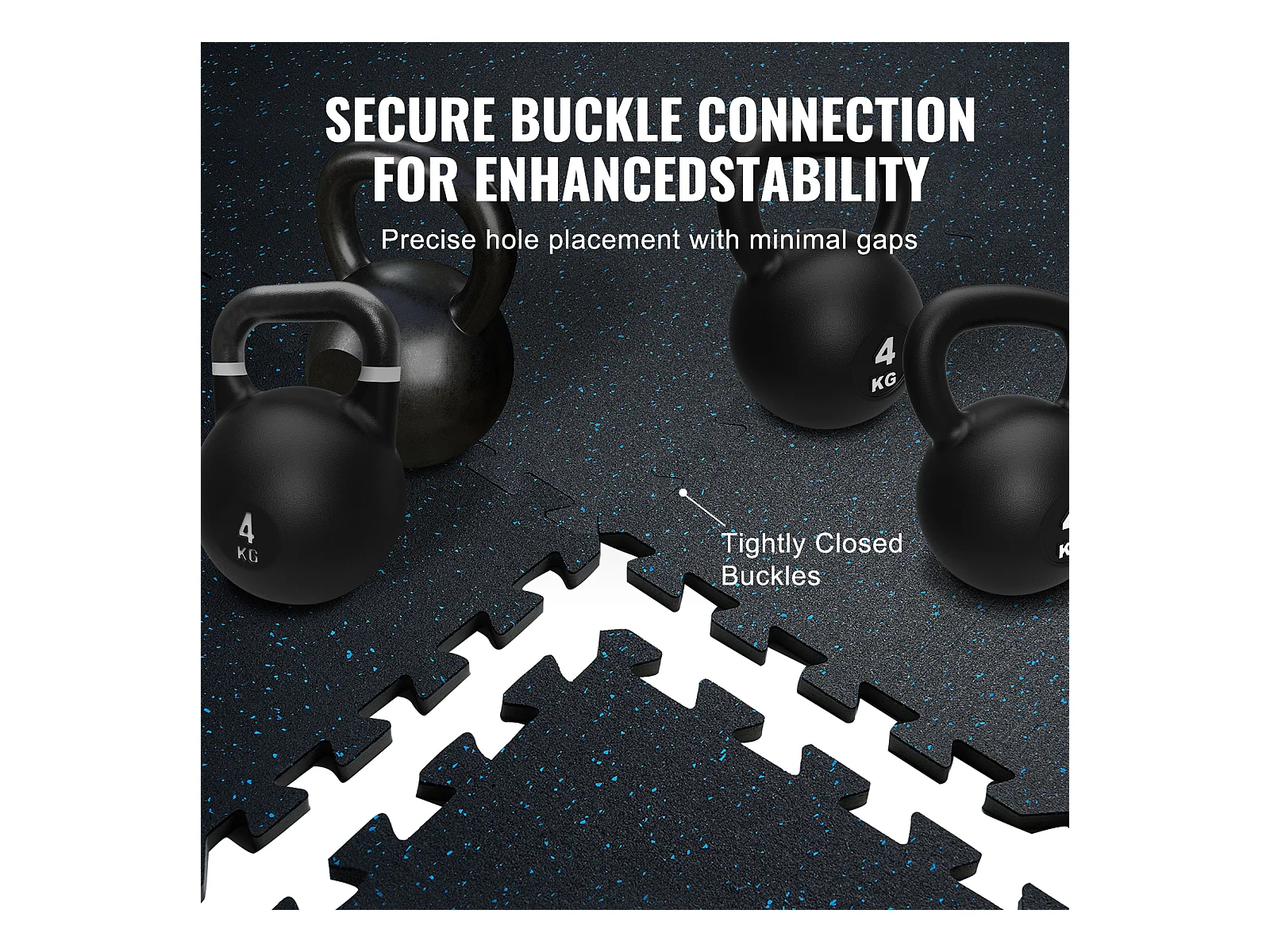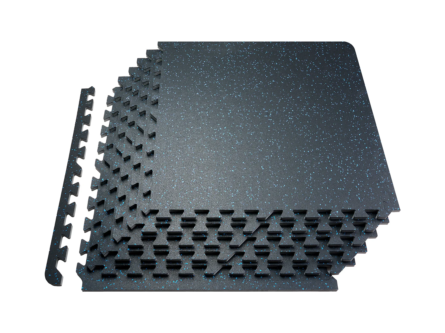 Tapis de Sol à Emboîtement, SucceBuy Tapis de Sol de Salle de Sport de 1.4 cm d'Épaisseur, 25 Carreaux, Dessus en Caoutchouc, Noir et Bleu