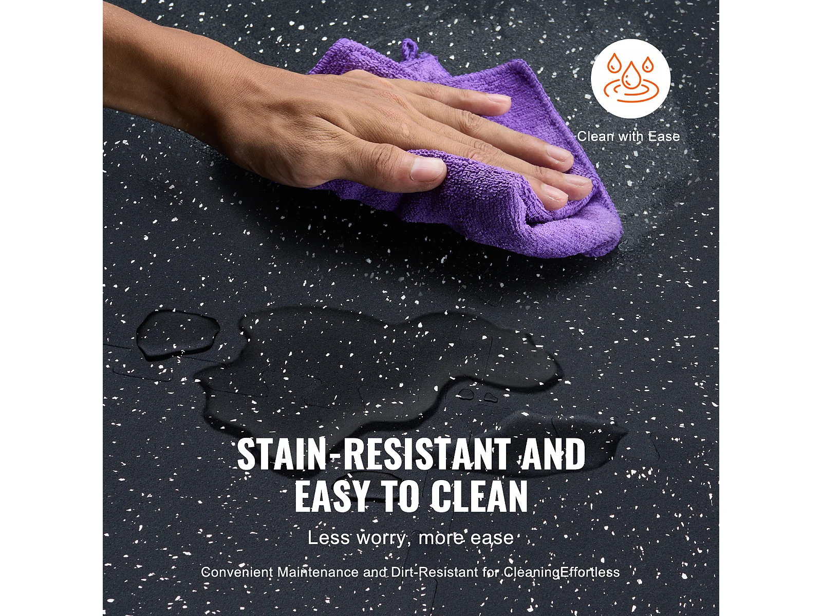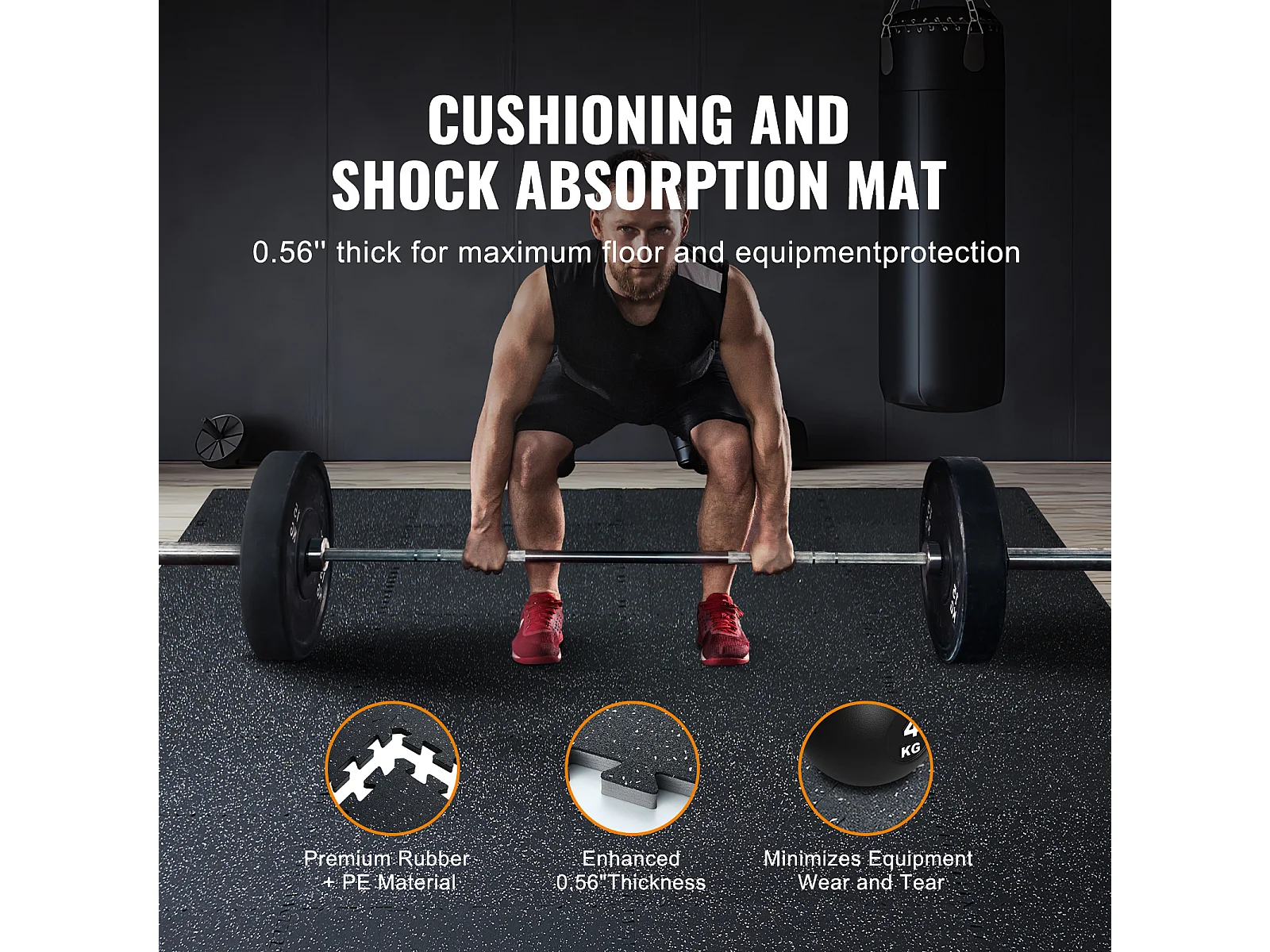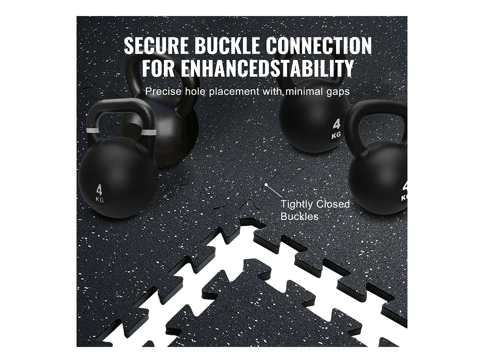 Tapis de Sol à Emboîtement, SucceBuy Tapis de Sol de Salle de Sport de 1.4 cm d'Épaisseur, 12 Carreaux, Dessus en Caoutchouc, Noir et Blanc