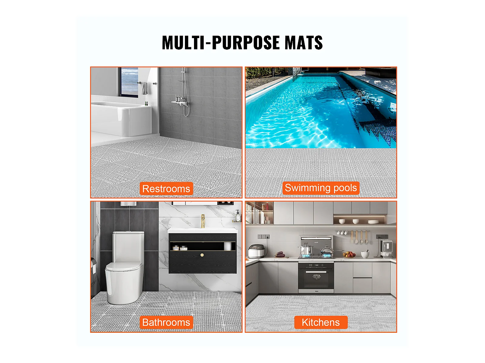 Tapis de Sol Emboîtable SucceBuy. PVC 12 x 12 Pouces. Antidérapant. Paquet de 50. Pour Les Zones Humides