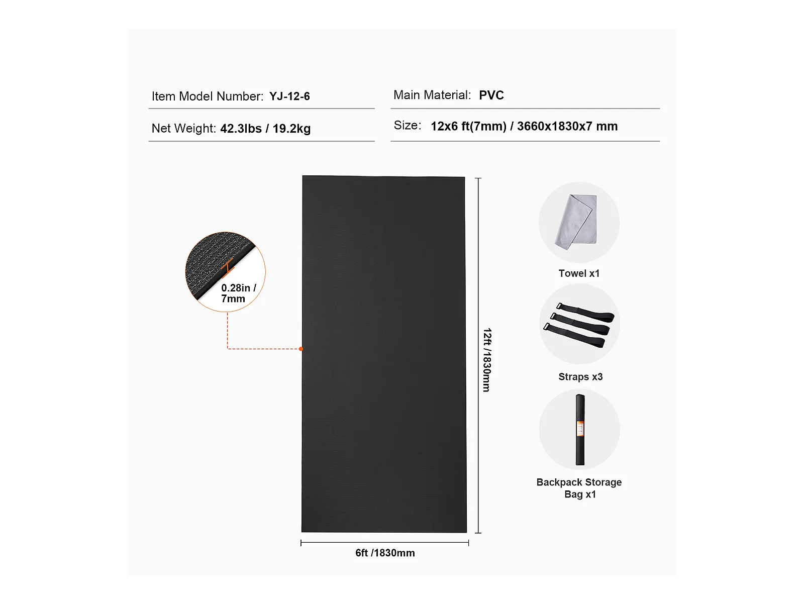 Tapis de Yoga SucceBuy, Tapis d'Exercice, 3,6 x 1,8 m, Antidérapant, Yoga, Fitness, Exercice, pour Yoga à Domicile, Pilates et Entraînement au Sol