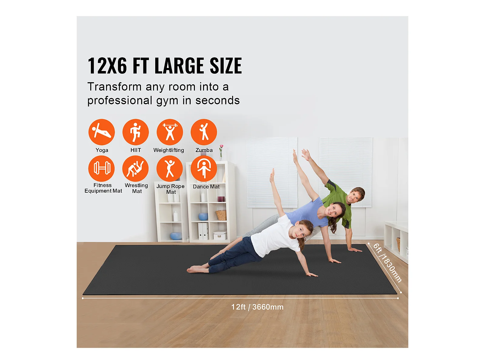 Tapis de Yoga SucceBuy, Tapis d'Exercice Antidérapant, 1,2 X 1,8 m, pour Hommes et Femmes, Noir