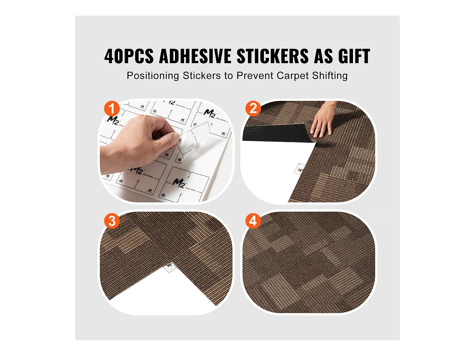 Tapis SucceBuy Dalles de Moquette 24 Pièces 60.96 x 60.96cm Carrés avec Rembourrage Attaché DIY - Marron Mélangé