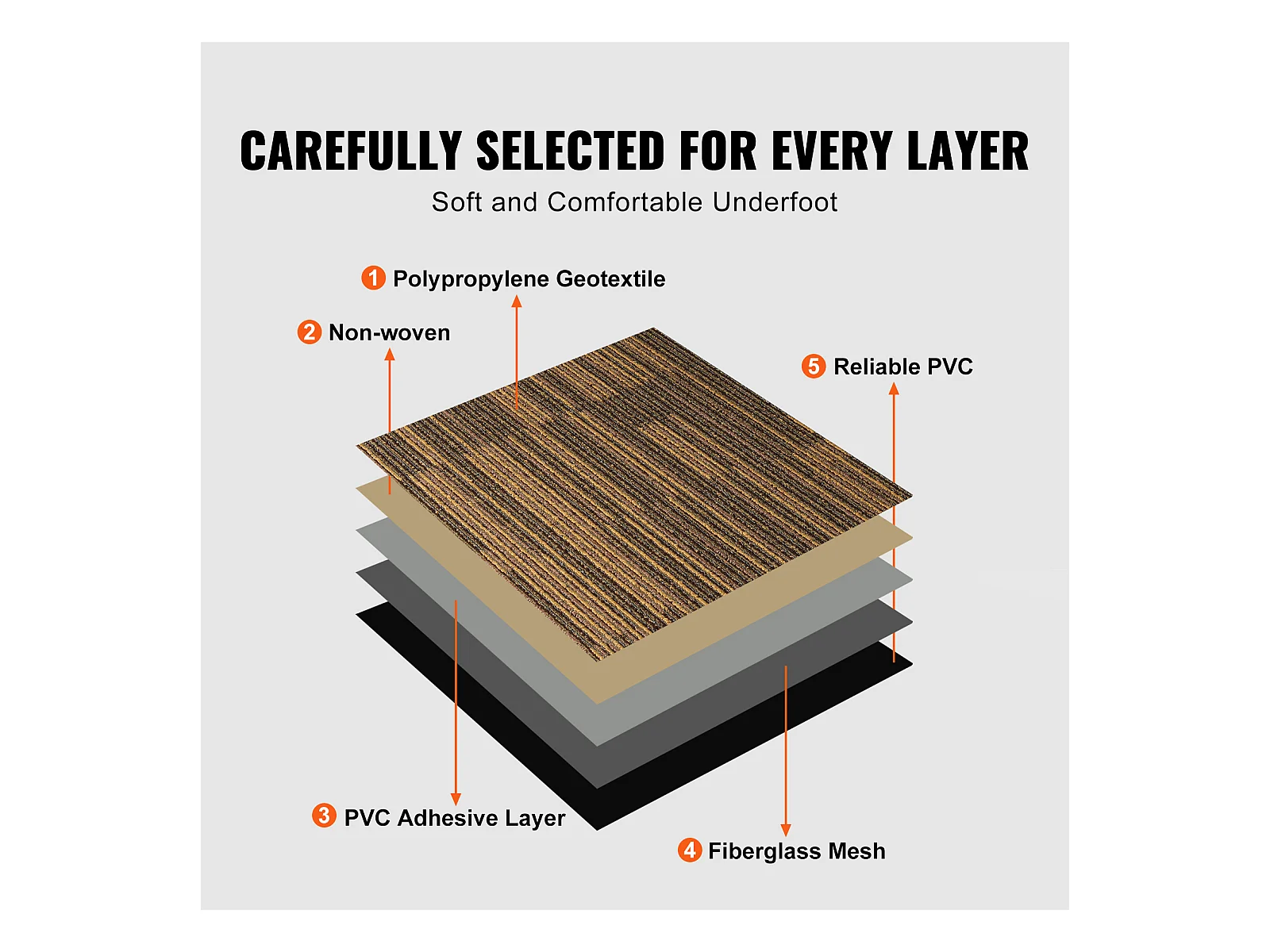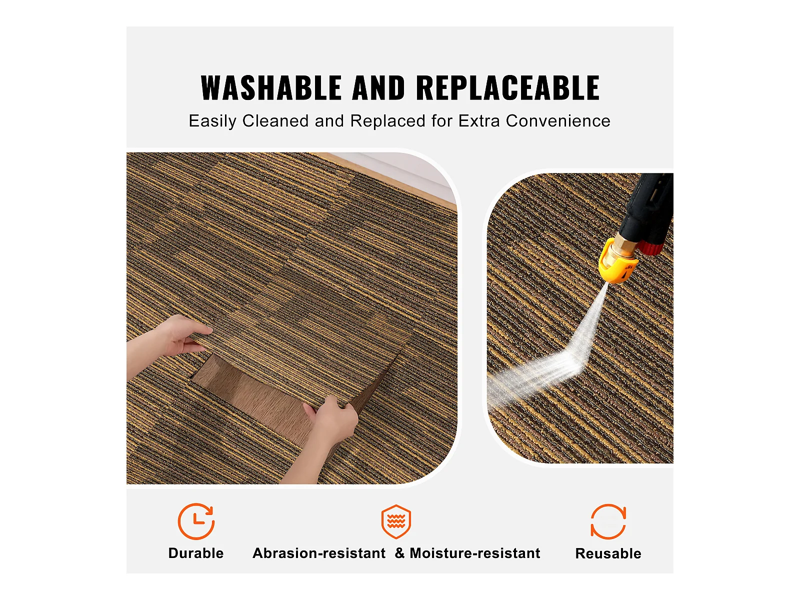 Tapis SucceBuy Dalles de Moquette Réutilisables 12 pièces 50.8CMx50.8CM Carrés avec Rembourrage Attaché DIY - Marron Mélangé