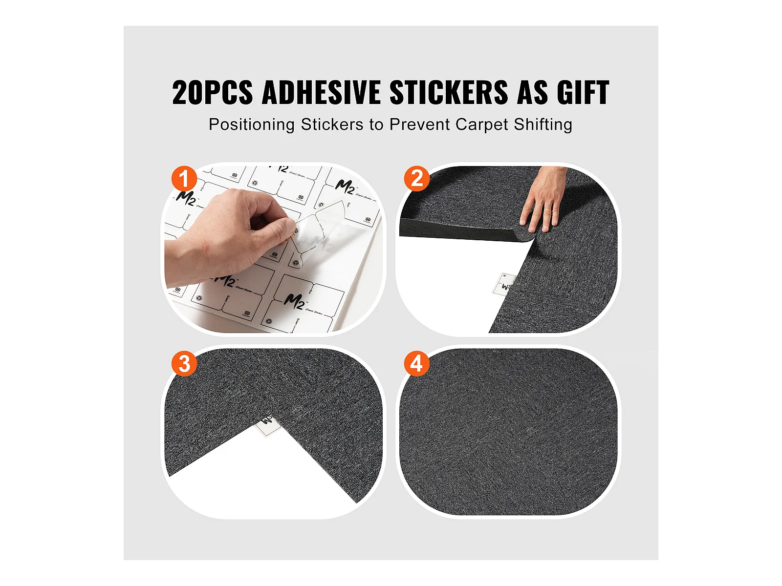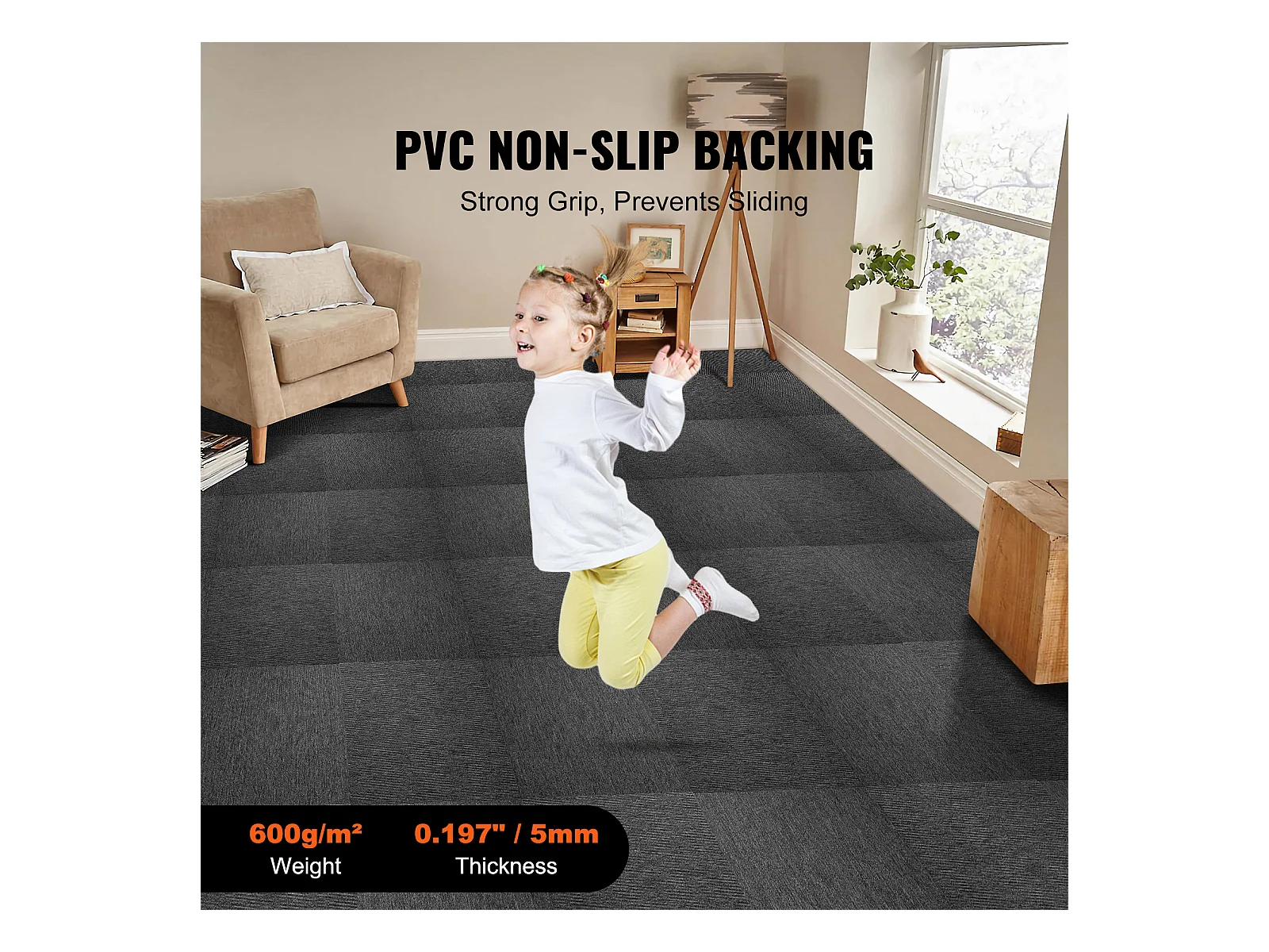 Tapis SucceBuy Dalles de Moquette Réutilisables 20 Pièces 50.8CMx50.8CM Carrés avec Rembourrage Attaché DIY - Gris Foncé