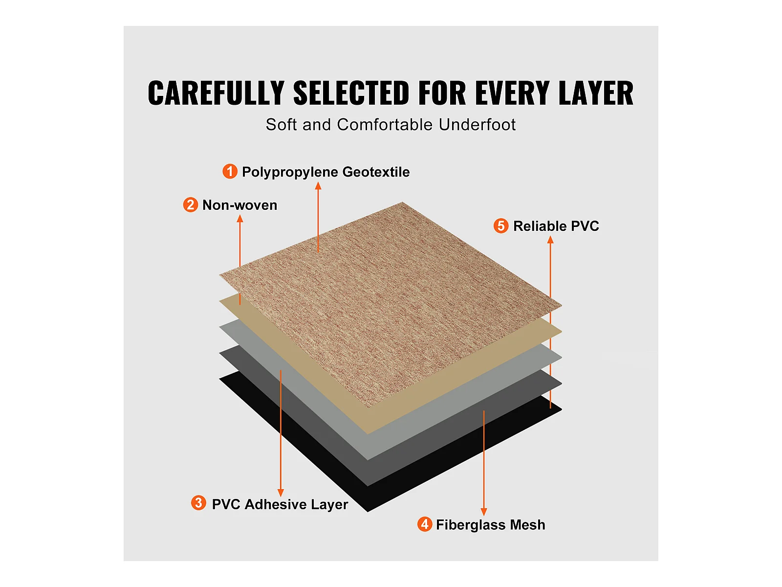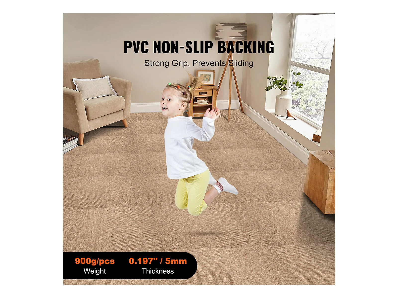 Tapis SucceBuy Dalles de Moquette Réutilisables 50.8 x 50.8 cm, Rembourrées, Souples, avec Rembourrage, Marron Foncé