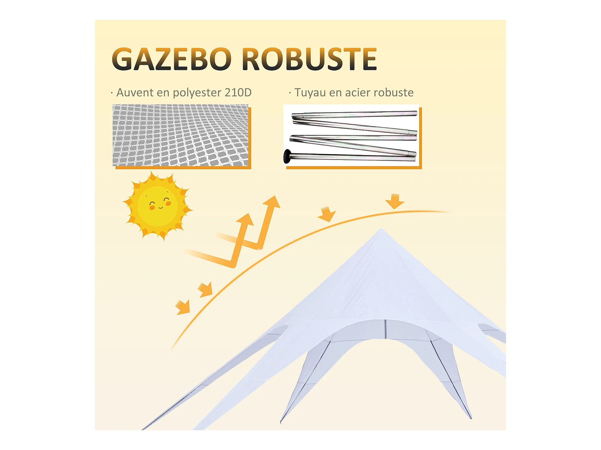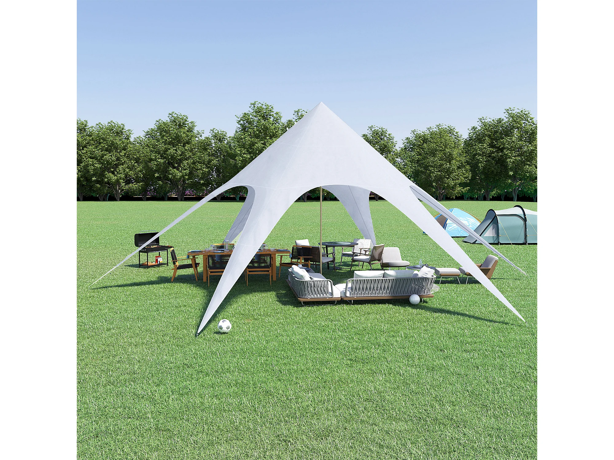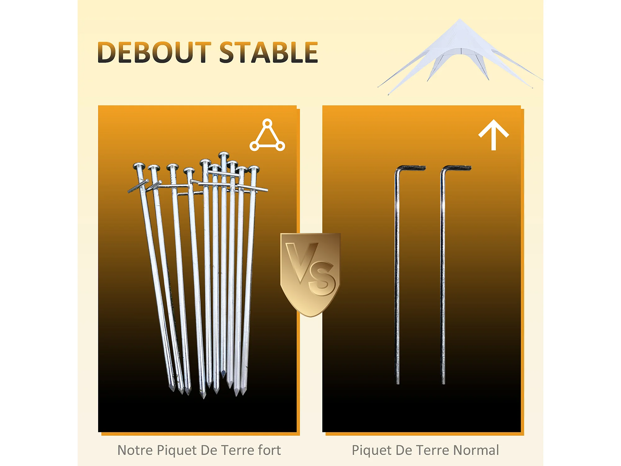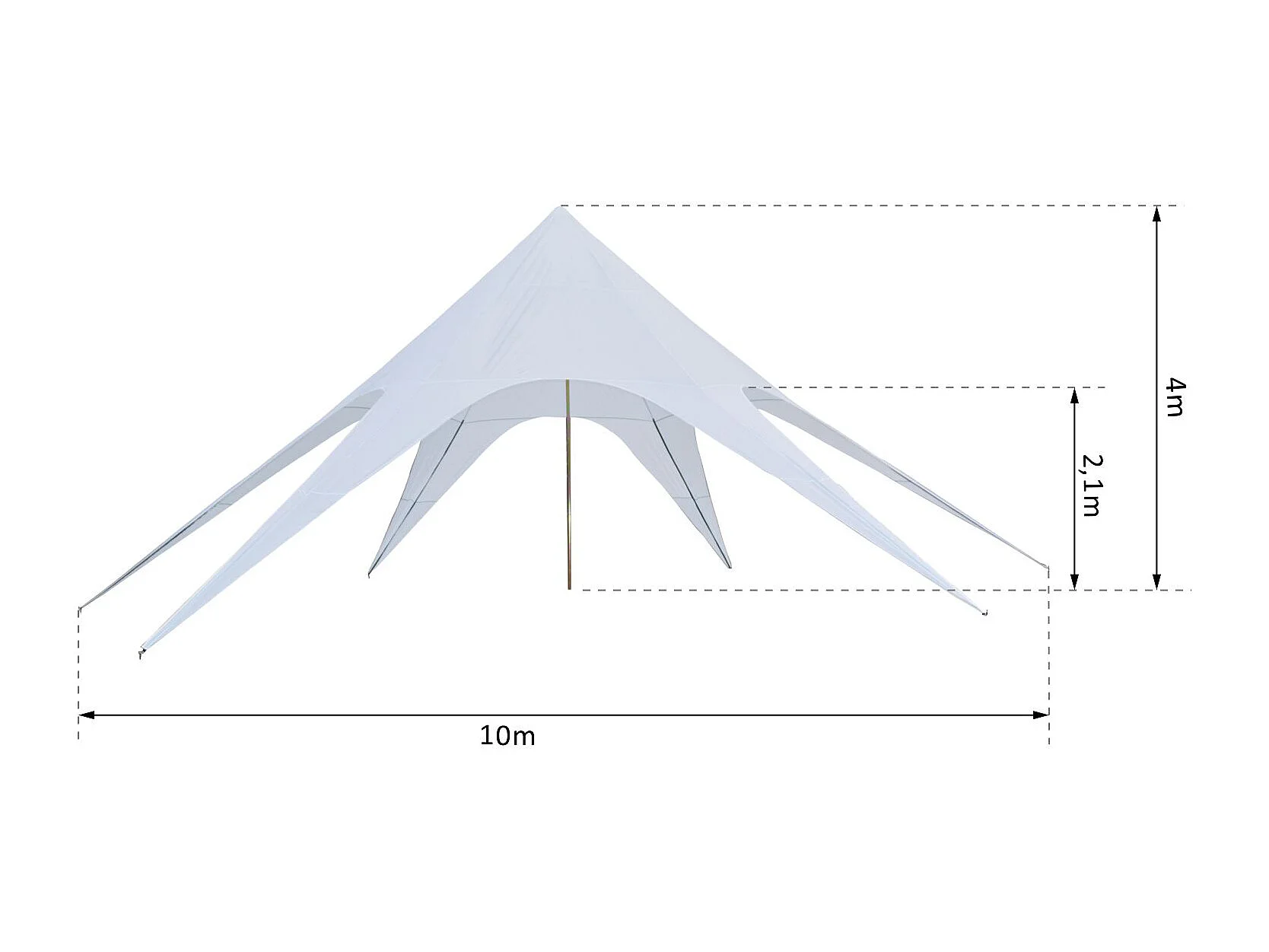 Tente de jardin XXL en étoile bâche anti-pluie voile d'ombrage toile de camping 10L x 10l x 4H m polyester haute densité 210D imperméable bleu clair