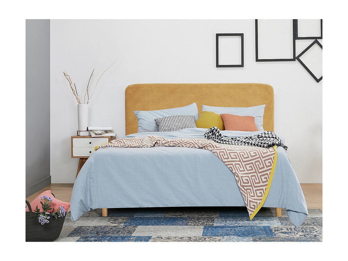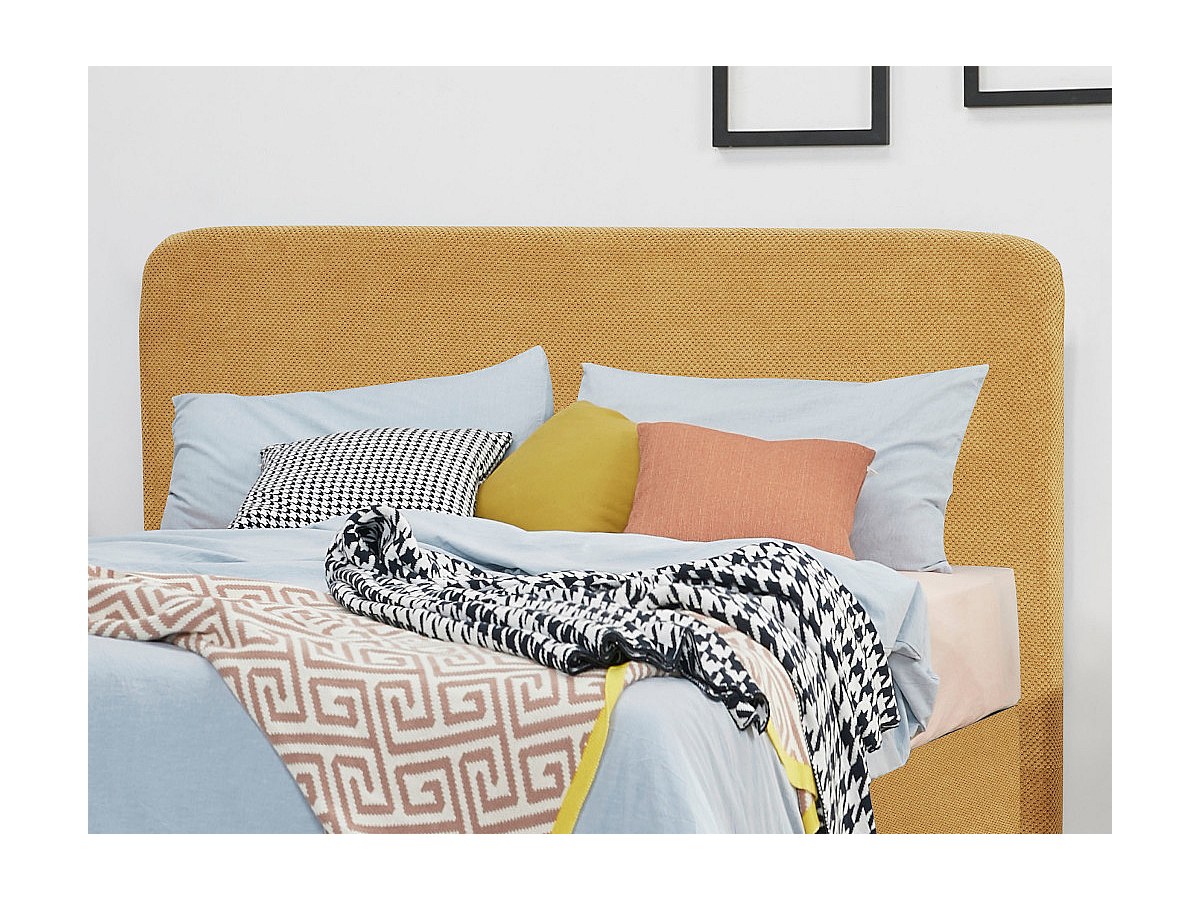 Blotissez-vous dans cette tête de lit aux angles arrondis et au revêtement très doux. Grâce à son tissu nid d'abeille, elle vous offrira encore plus de confort. En gris ou en jaune, elle apportera un charme scandinave à votre chambre.