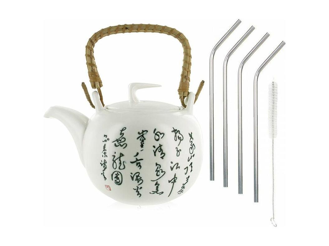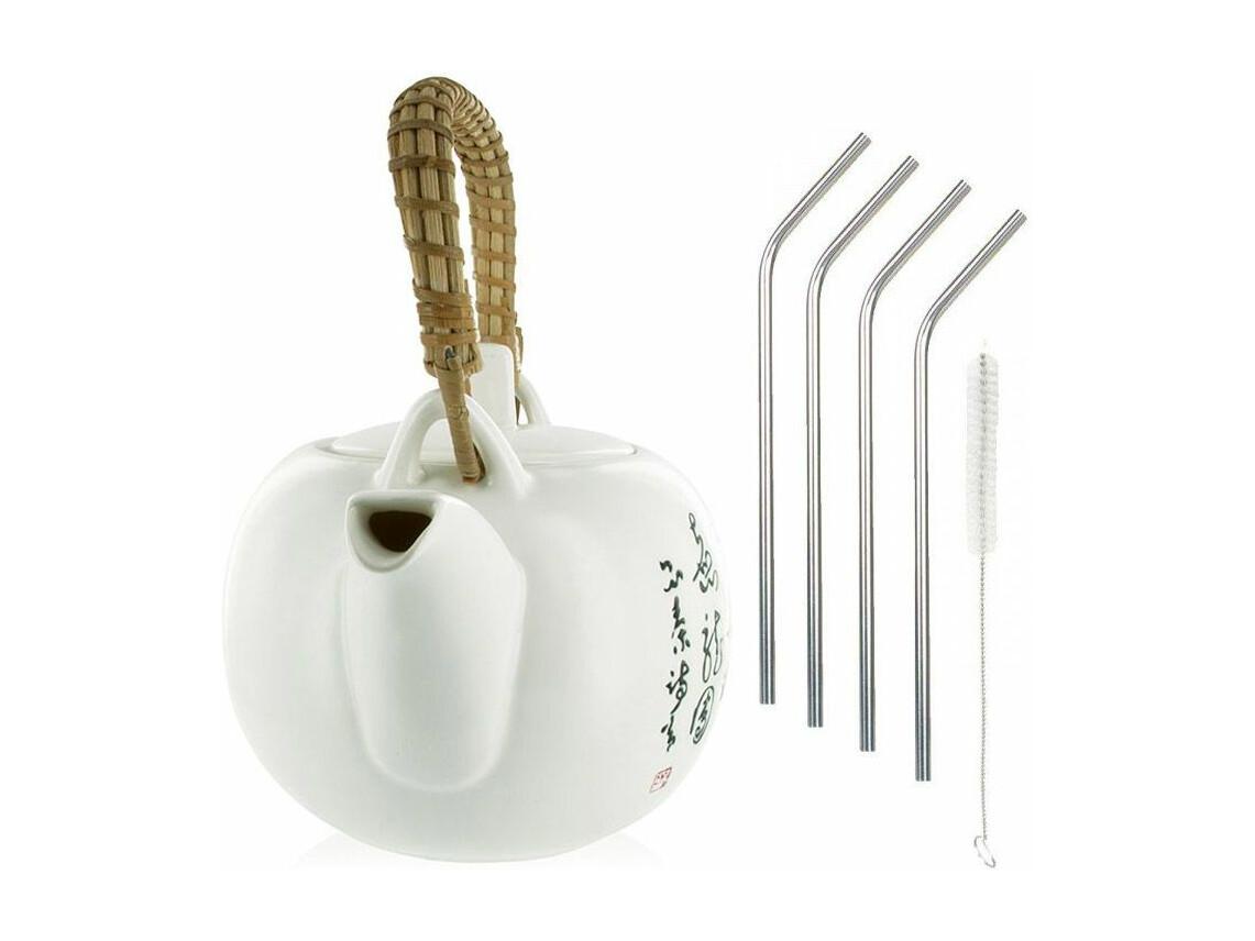 Théière Jiangxi en faïence 1 litre + 4 pailles en inox