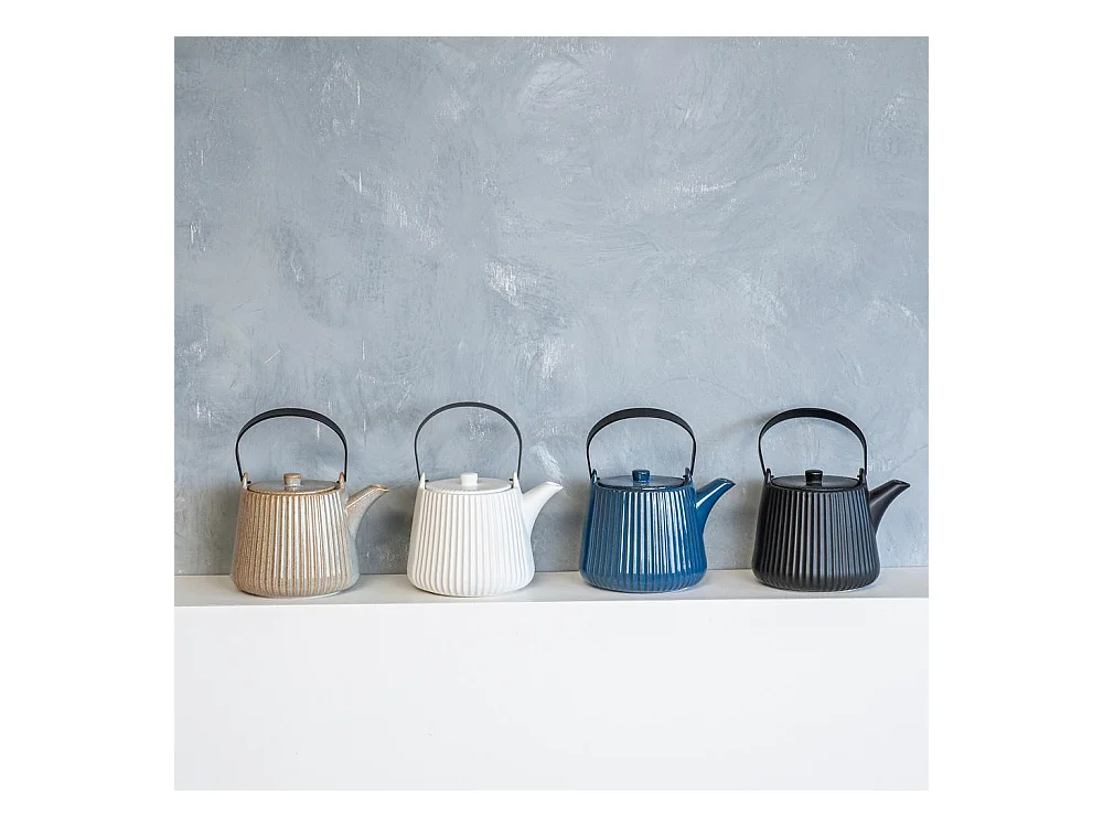Ogo Living - Theiere Enzo 1200ml En Porcelaine Blanche Et Couvercle Acacia
