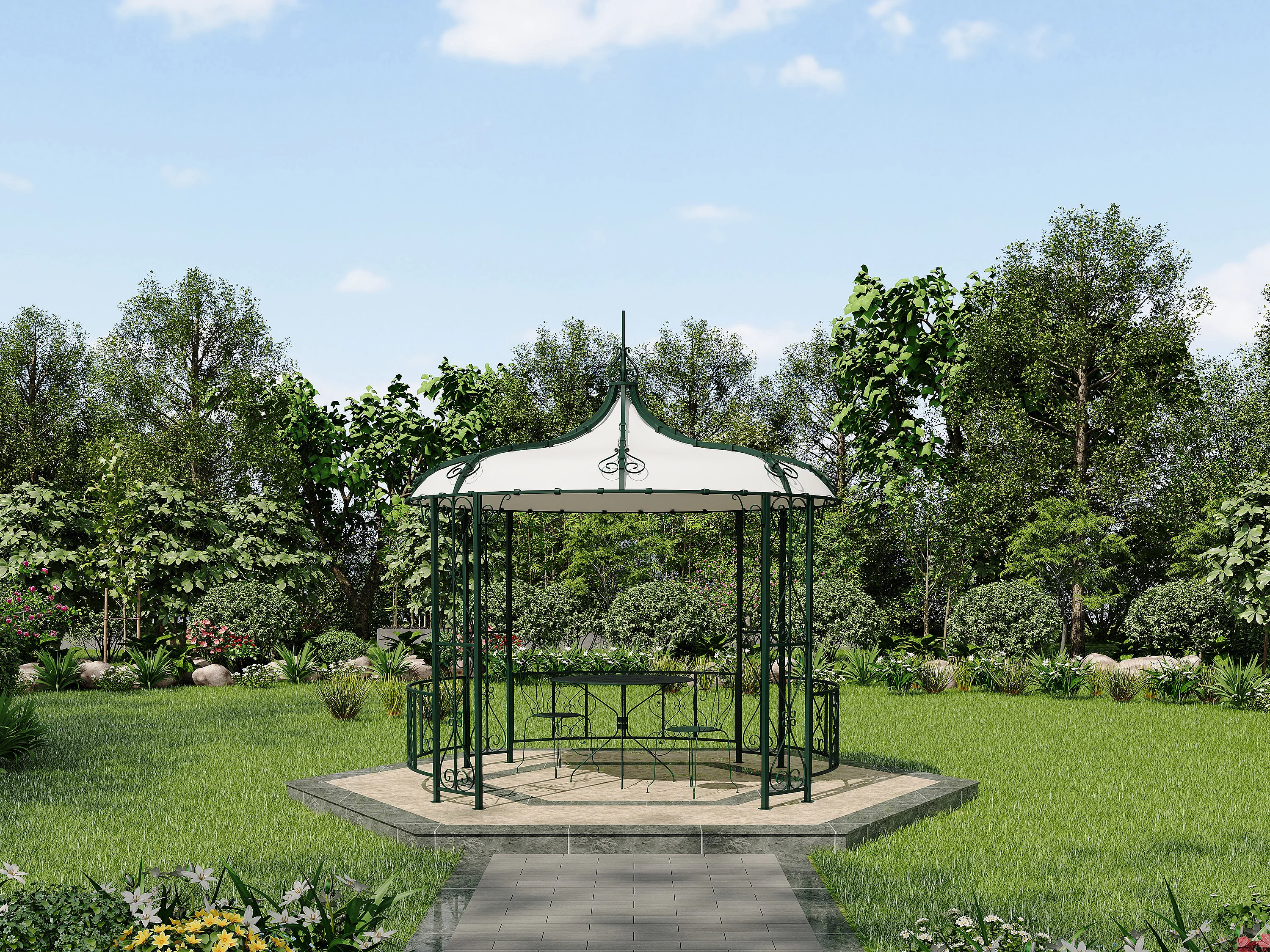 Kiosque de jardin en métal façon fer forgé D300 x H305 cm - Vert - TILCARA