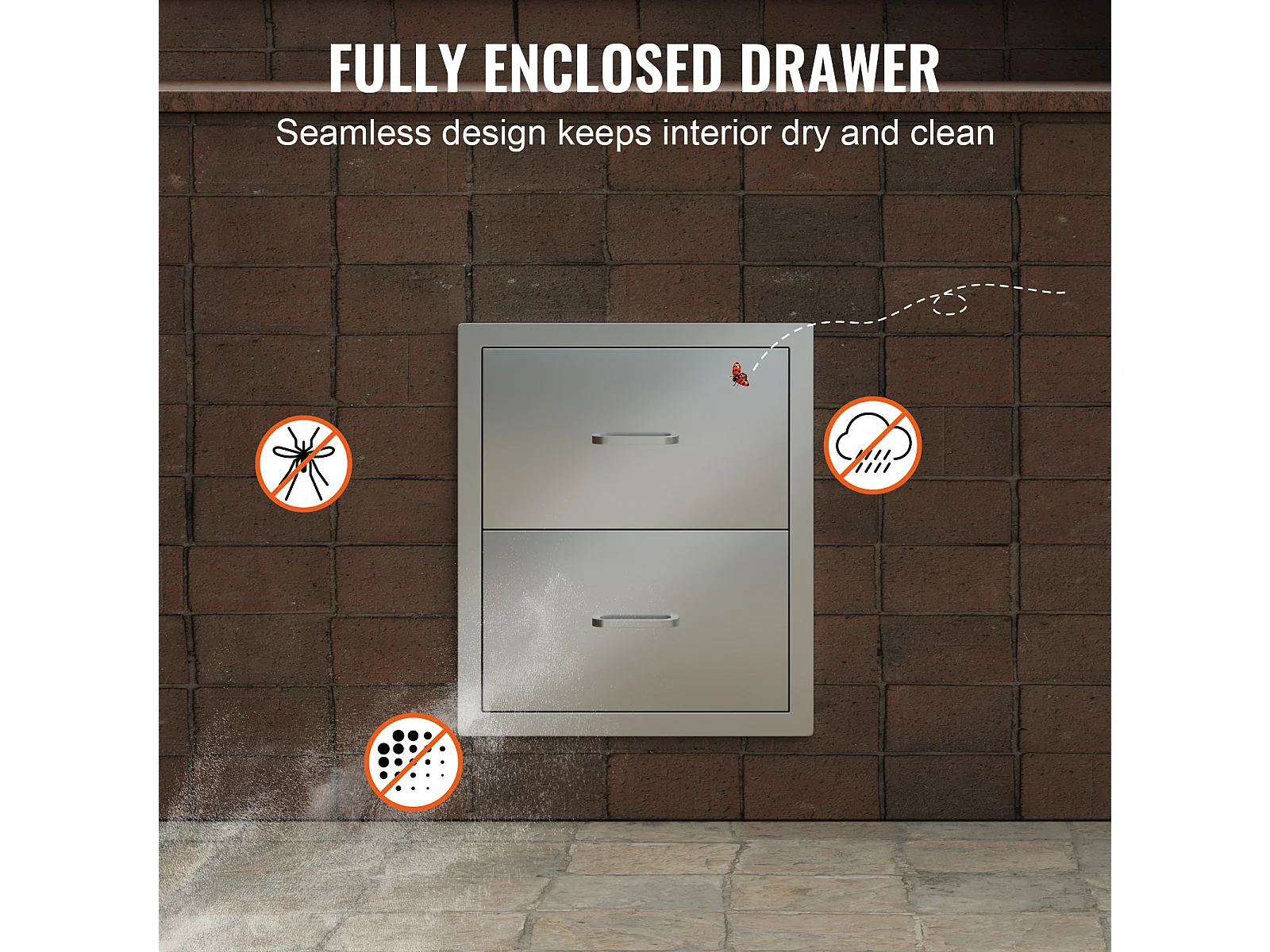 Tiroirs de Rangement SucceBuy Doubles en Acier Inoxydable 45CM x 52CM pour Cuisine/Barbecue Extérieur