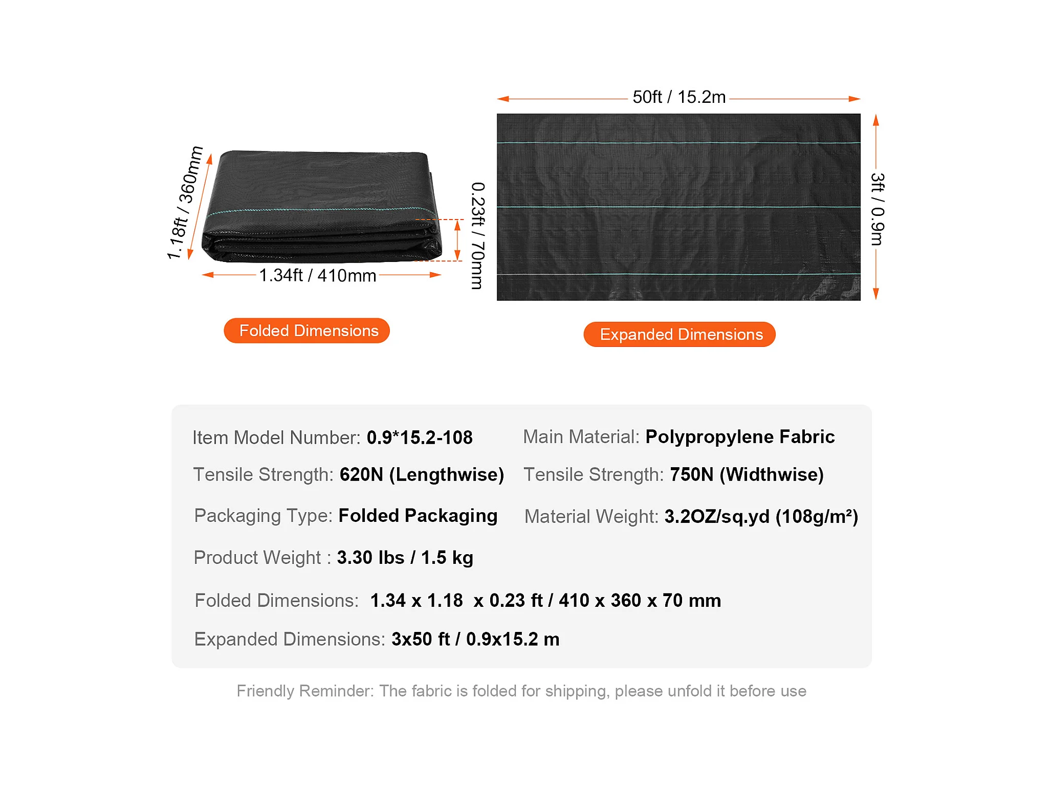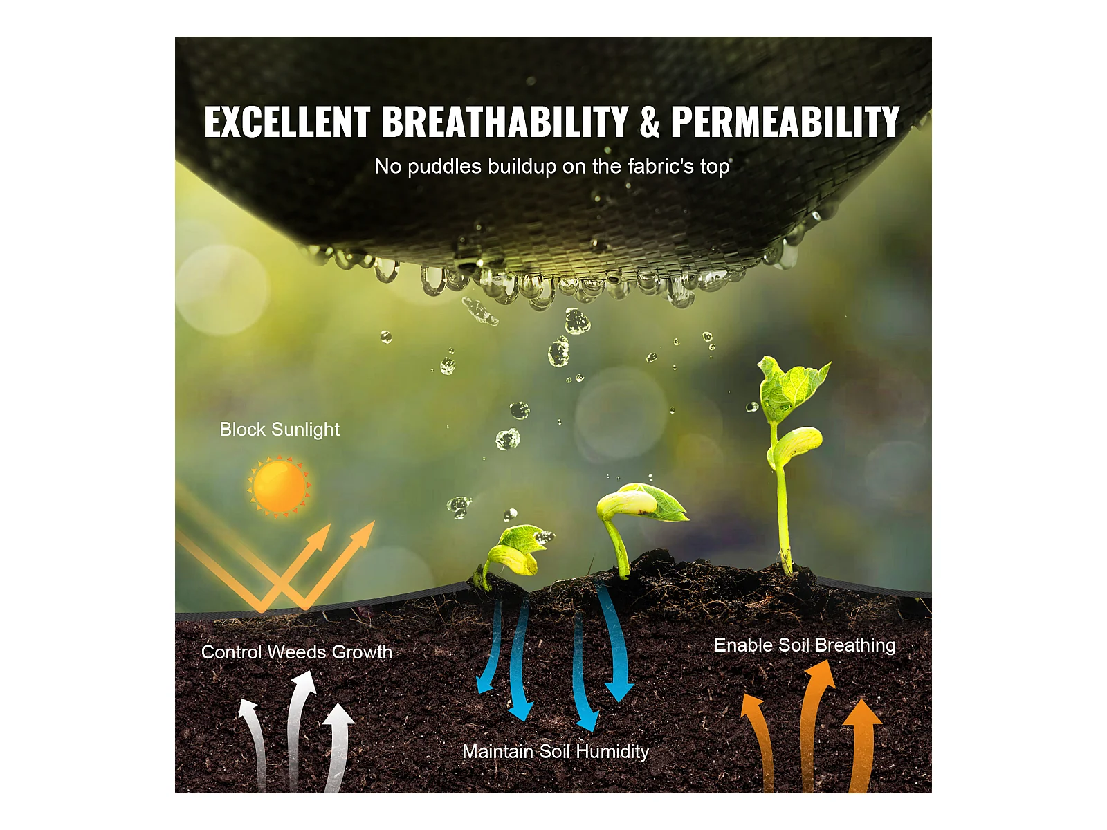 Toile de Paillage,SucceBuy Tissu Anti-Mauvaises Herbes 0.9 x 15.2 m, PP Tissé Robuste, Tapis de Contrôle des Mauvaises Herbes
