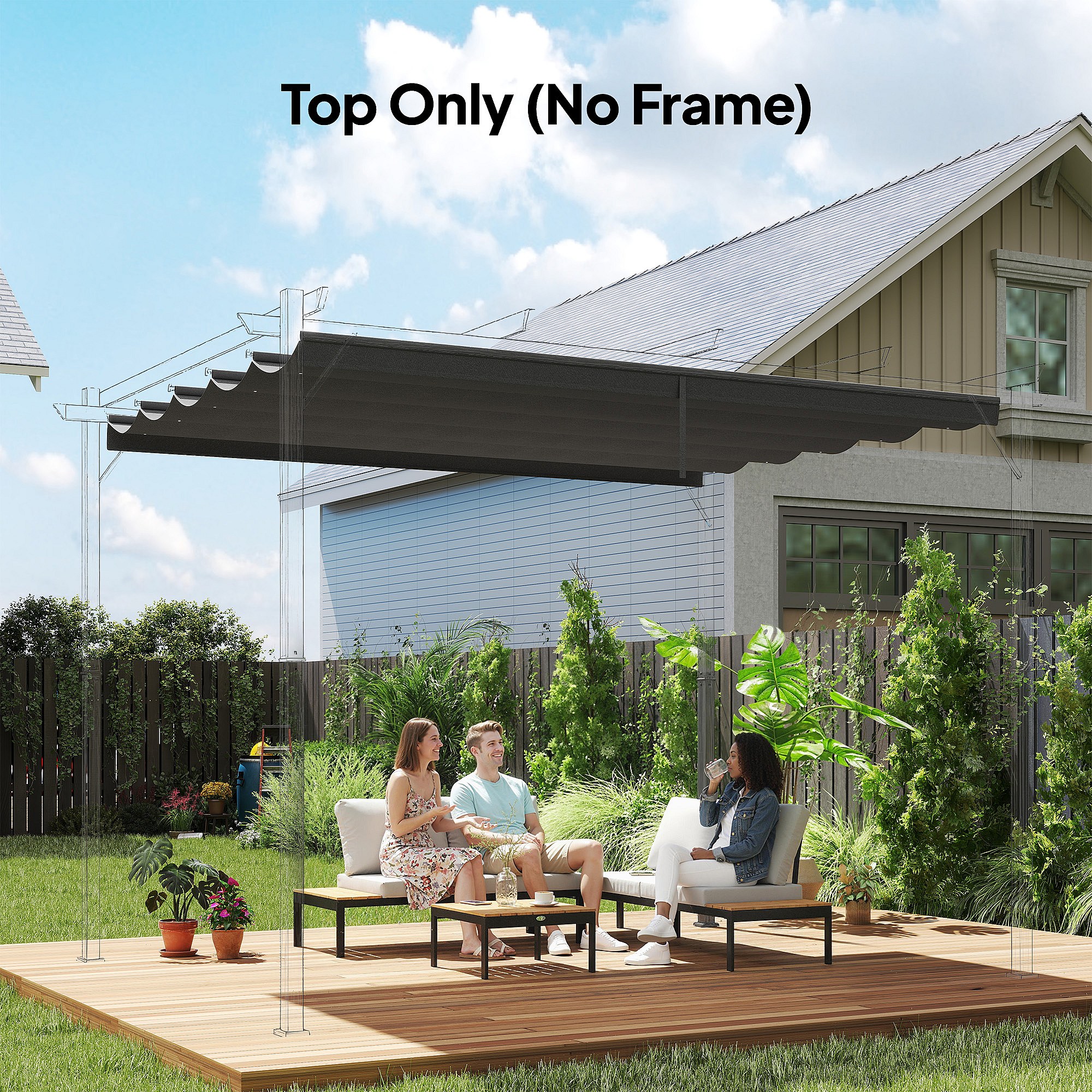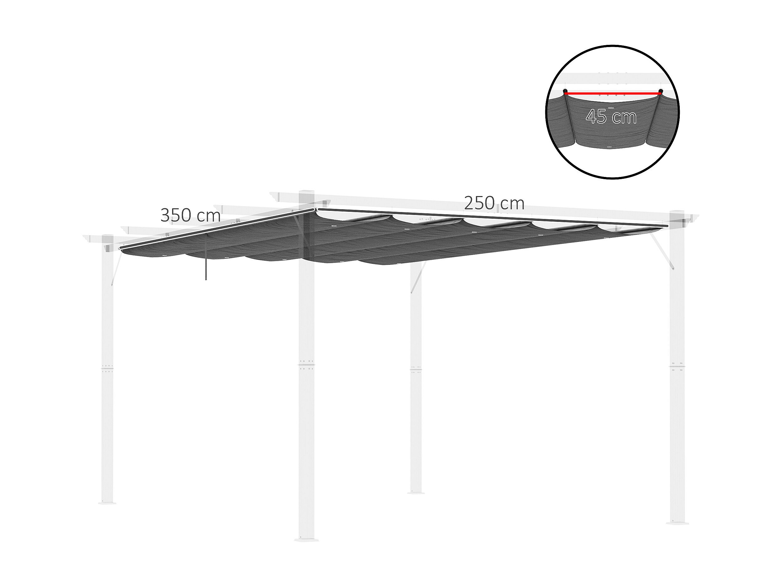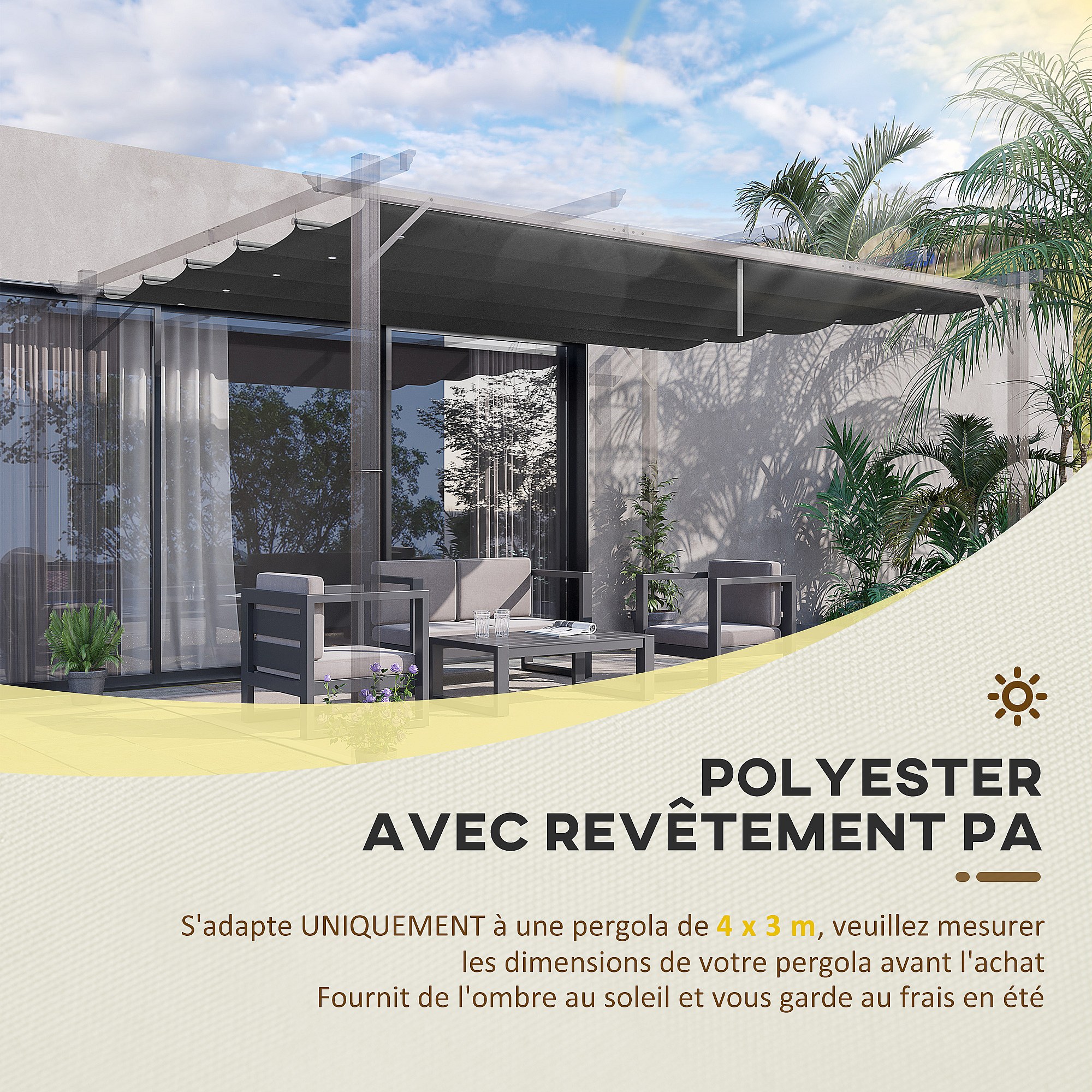 Toile de rechange pour pergola rétractable 4 x 3 m polyester haute densité 180 g/m² imperméabilisé gris