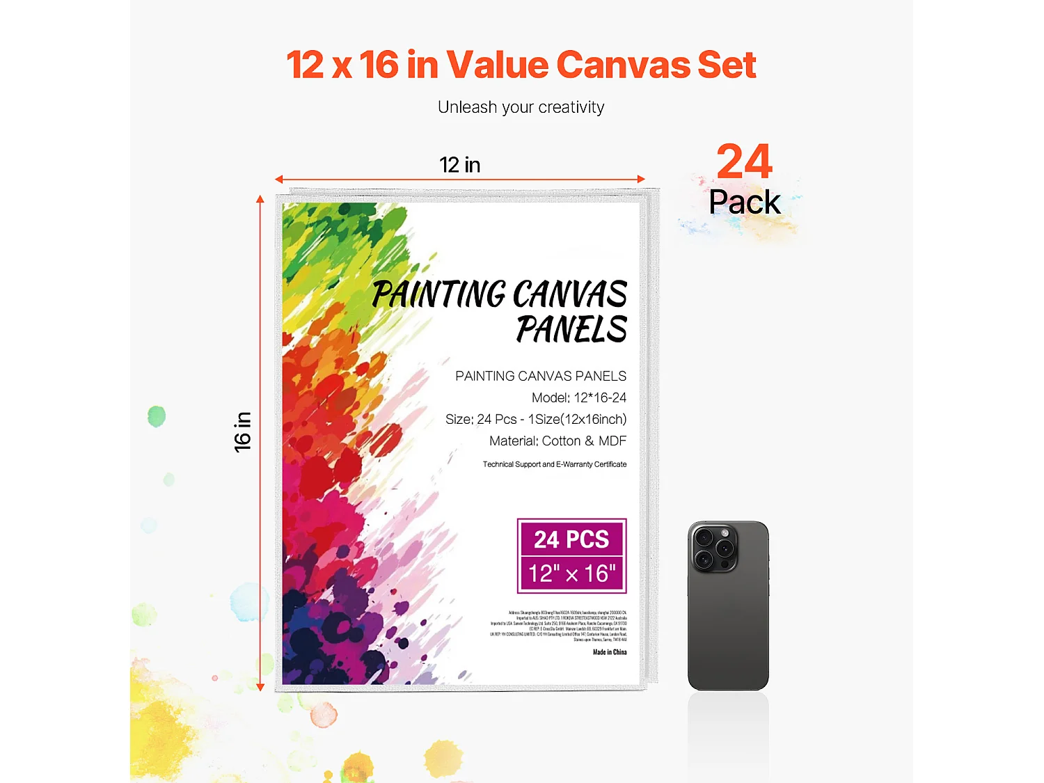 Toile pour Peinture, SucceBuy Lot de 24 Toiles pour Peinture, 30,5 x 40,6 cm, pour Différents Styles de Peinture, Idéales pour les Artistes de tous Niveaux
