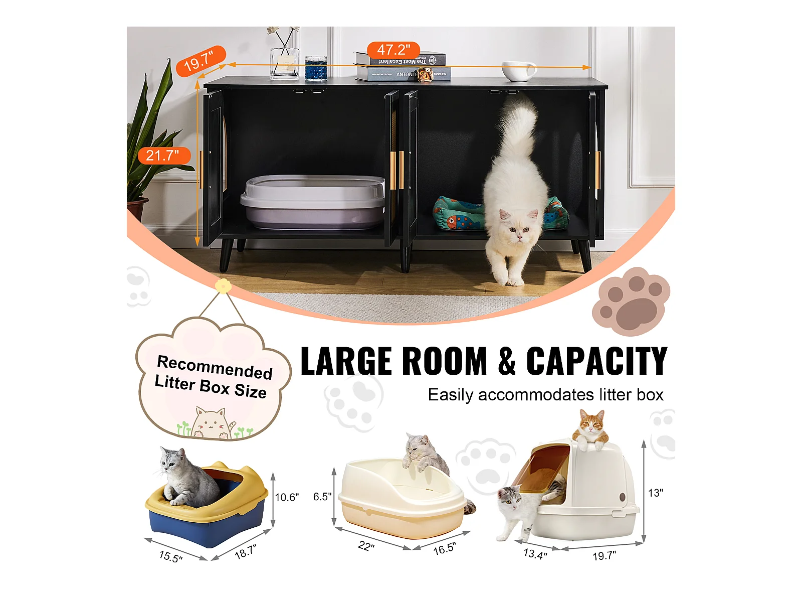 Bac à Litière pour Chat SucceBuy, Meuble Caché en Bois Avec 2 Pièces, Noir