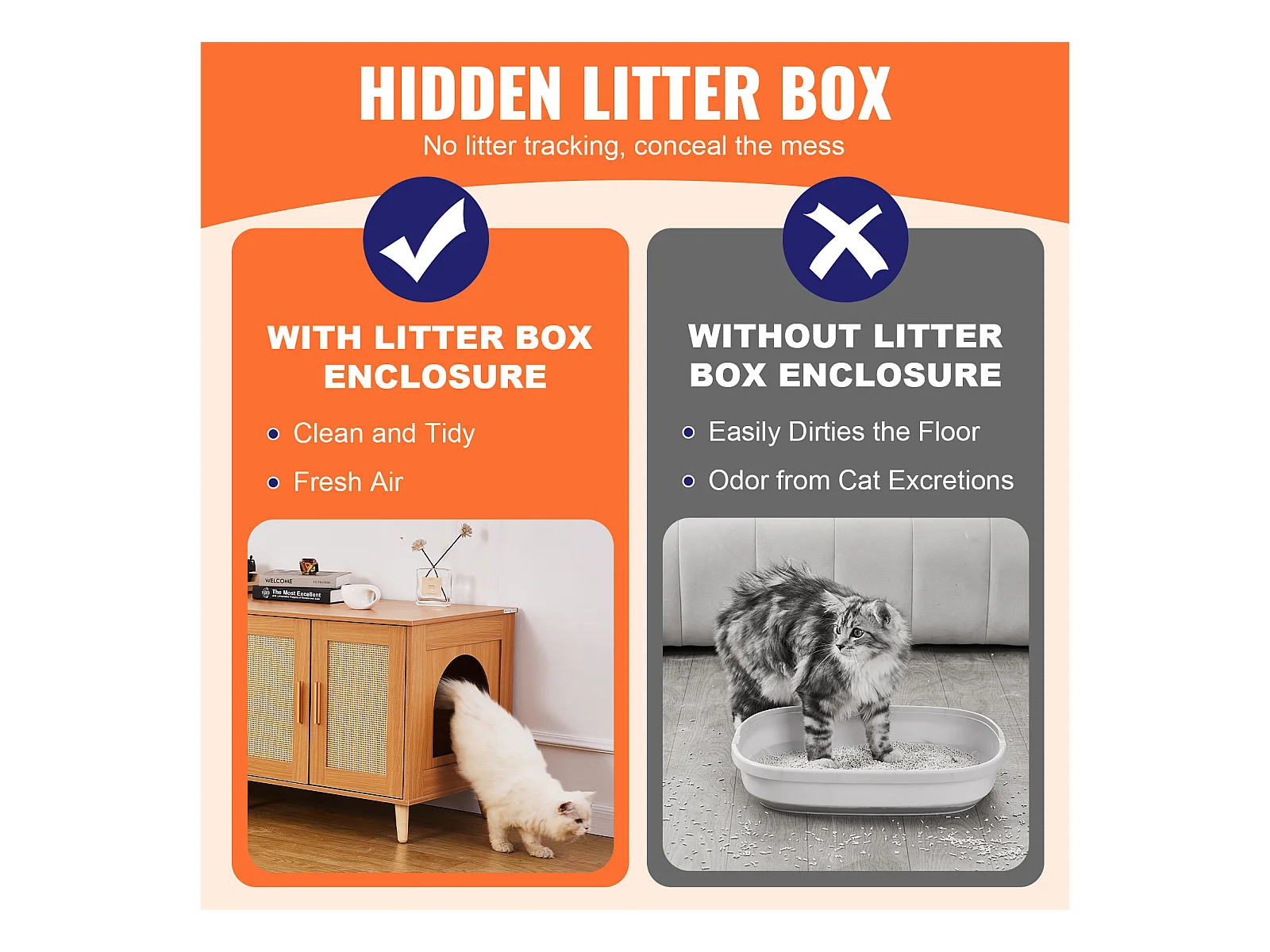 Bac à Litière pour Chat SucceBuy, Meubles Cachés en Bois pour 2 Chats, Intérieur spacieux avec deux fenêtres