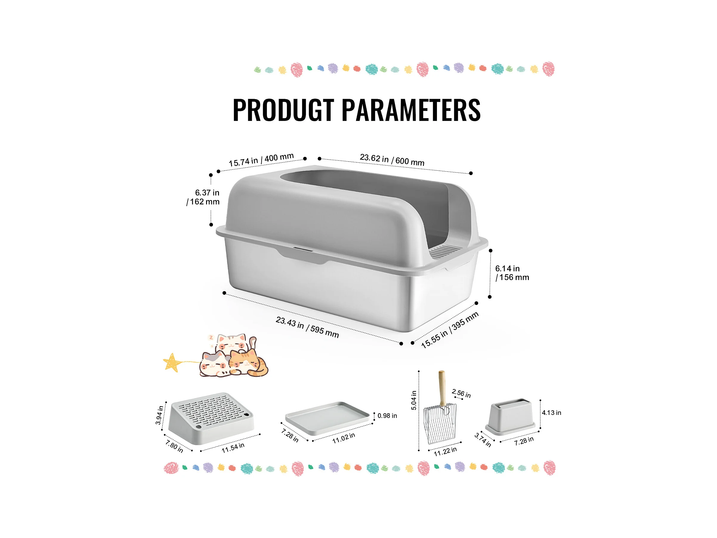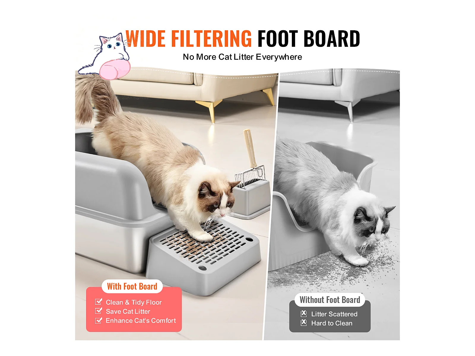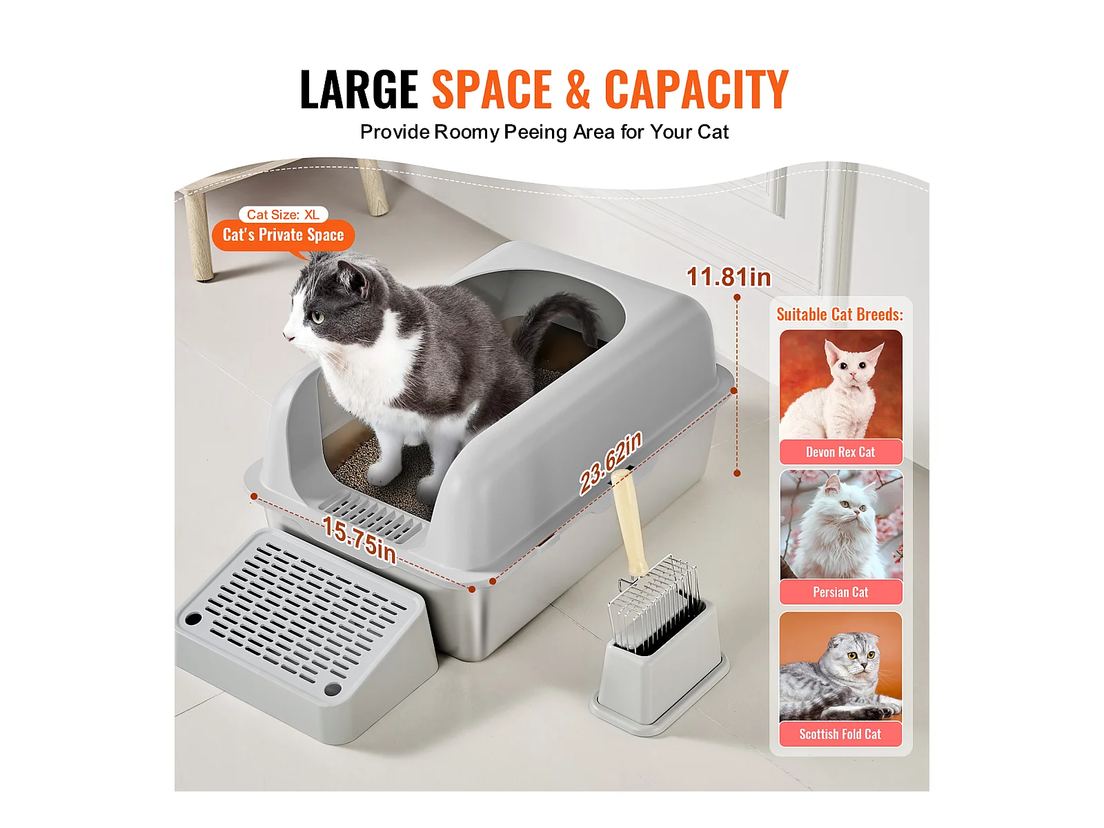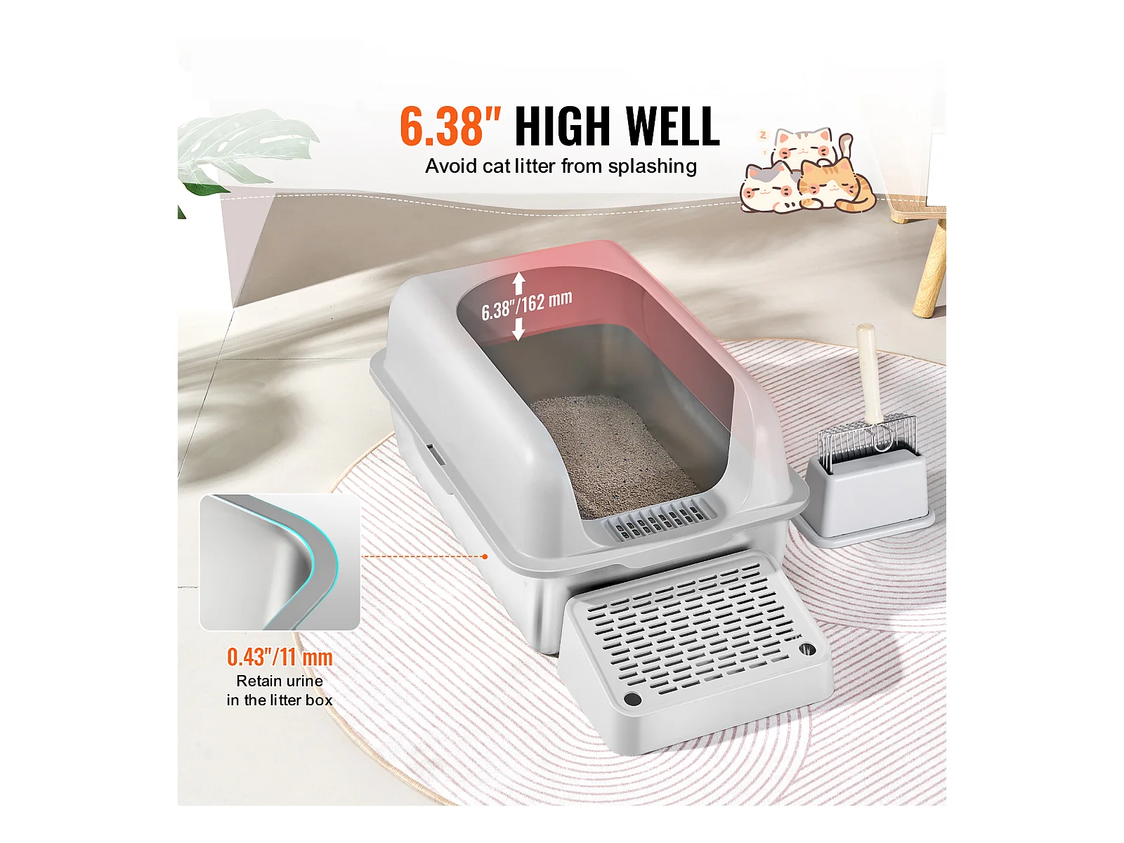 Toilette pour Chat, SucceBuy Bac à Litière pour Chat XL, 15.24 CM de Profondeur, Sans Odeur, en Acier Inoxydable avec Repose-pieds