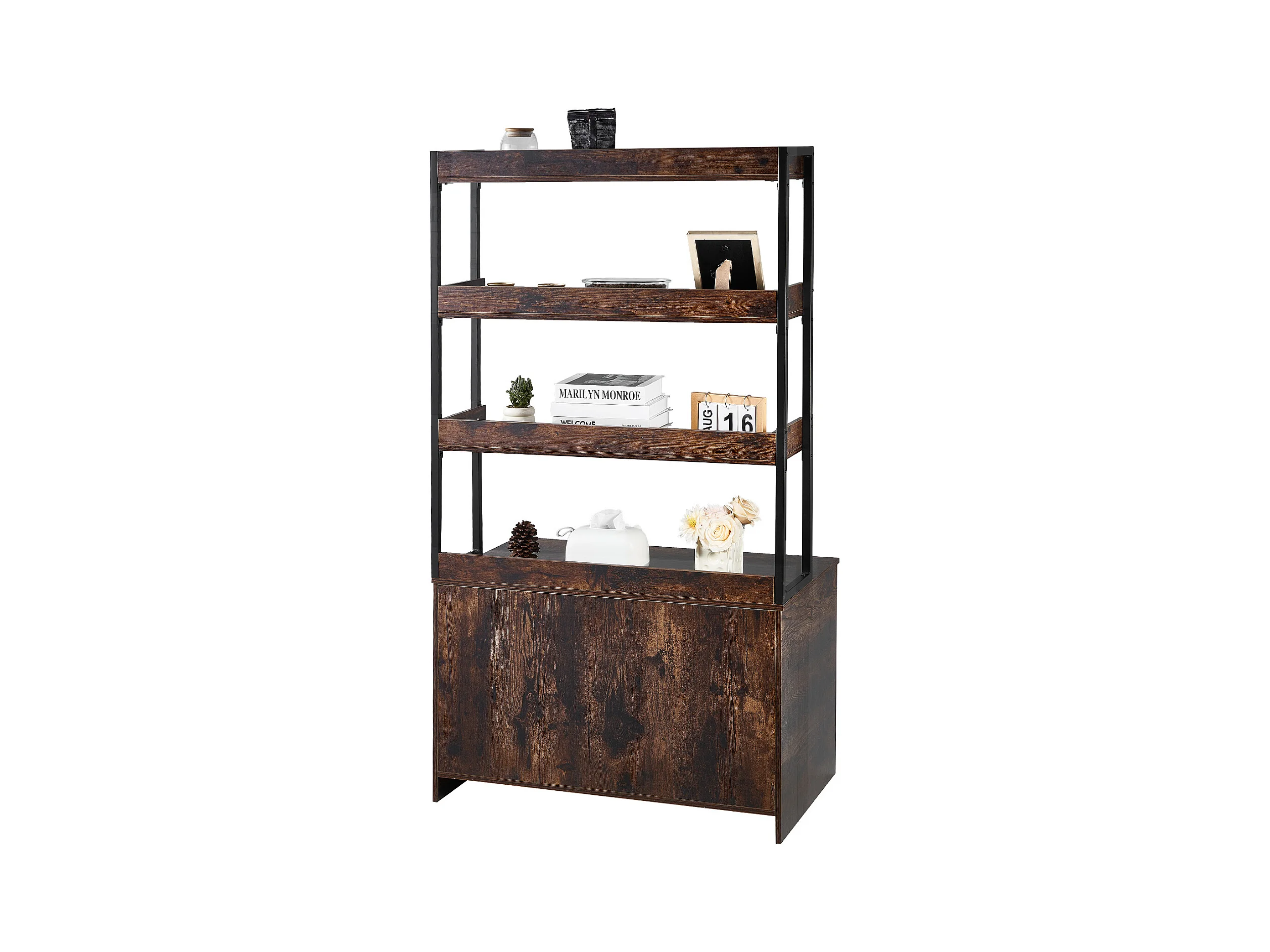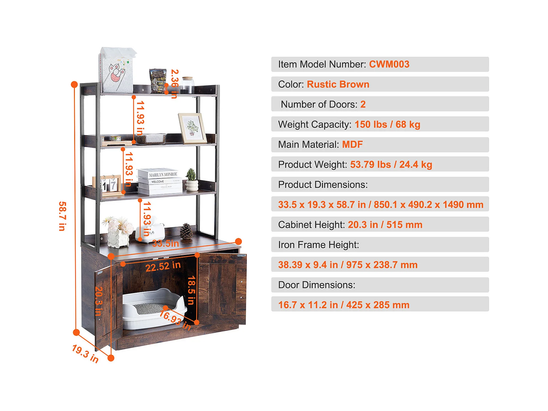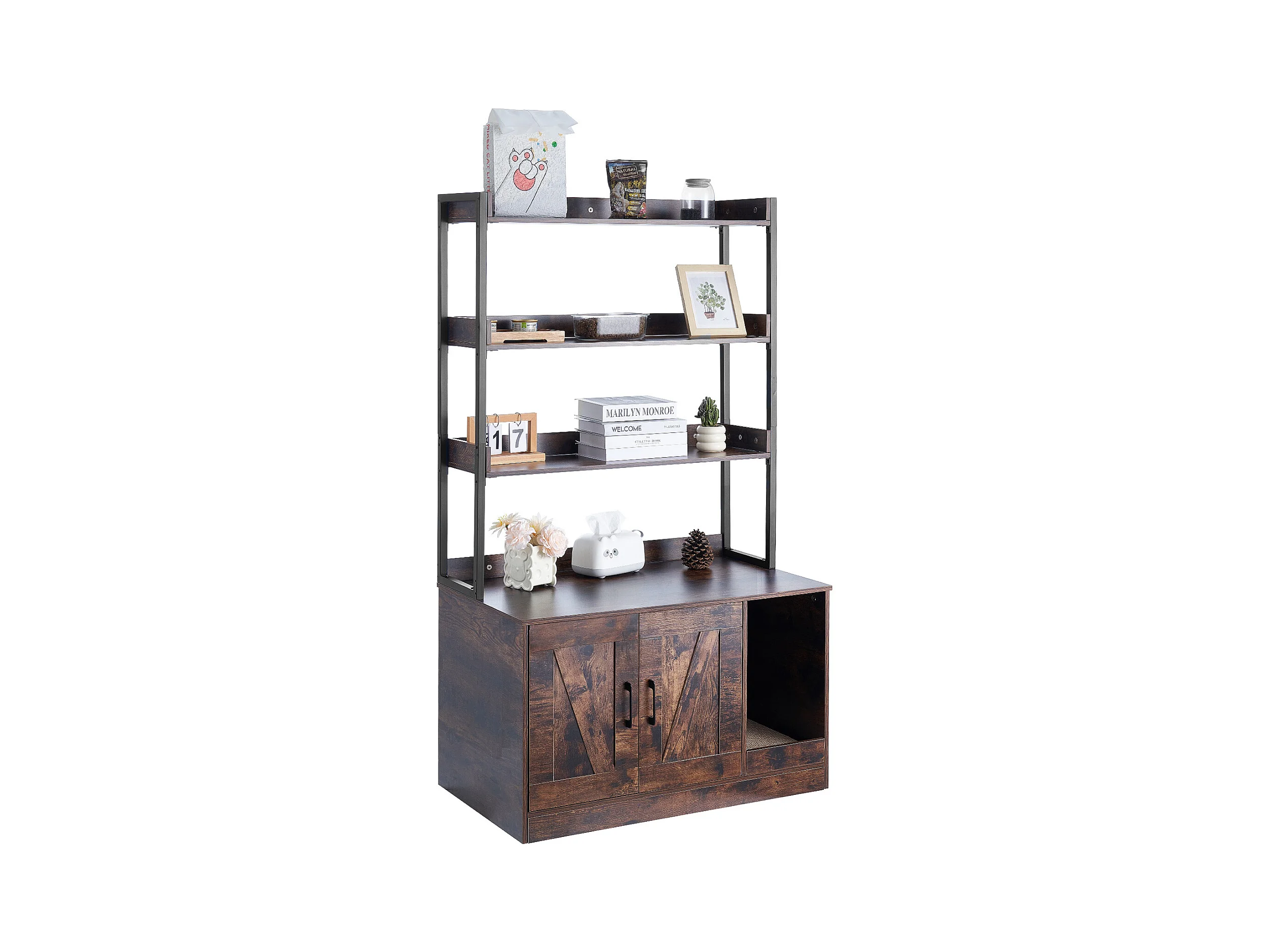 Enceinte de Litière pour Chat SucceBuy, Meuble en Bois Caché avec 3 Étagères, Offrant un Espace Privé pour Animal