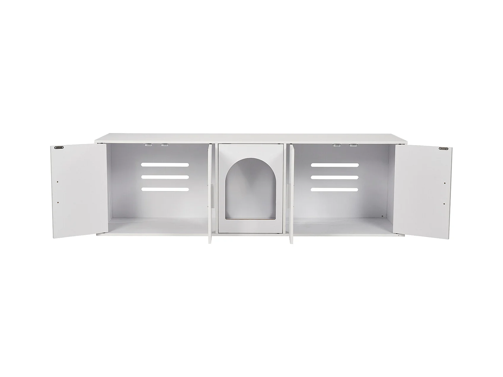Toilette pour Chat SucceBuy , Meubles Cachés en Bois, 147cm, Blanc