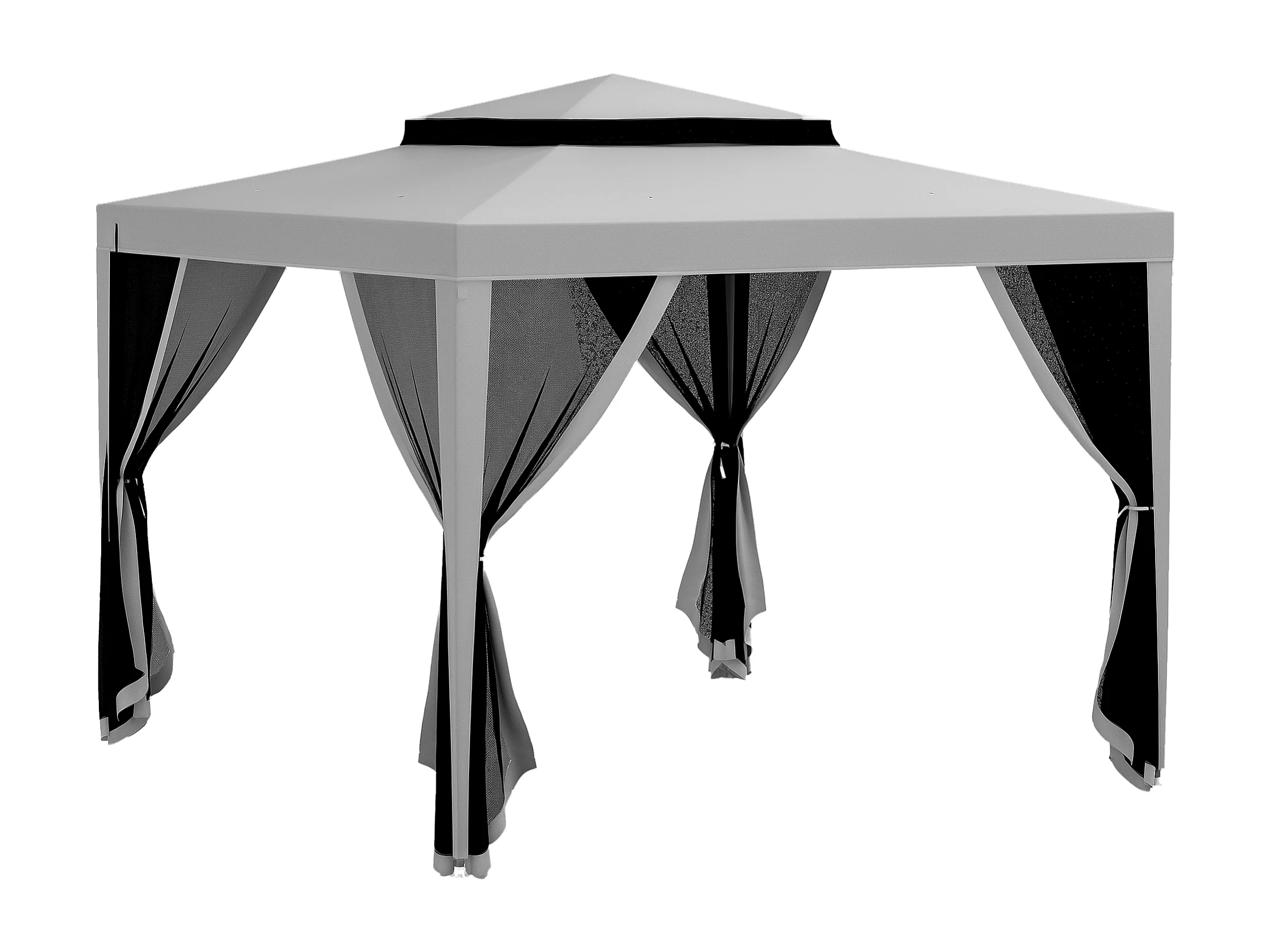 Tonnelle barnum de jardin 3L x 3l m avec 4 moustiquaires amovibles - double toit - métal polyester gris