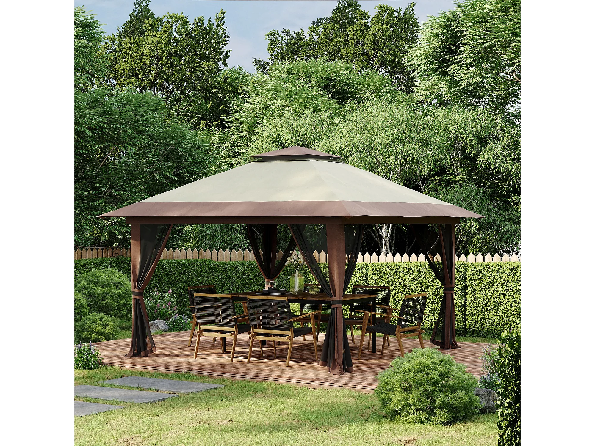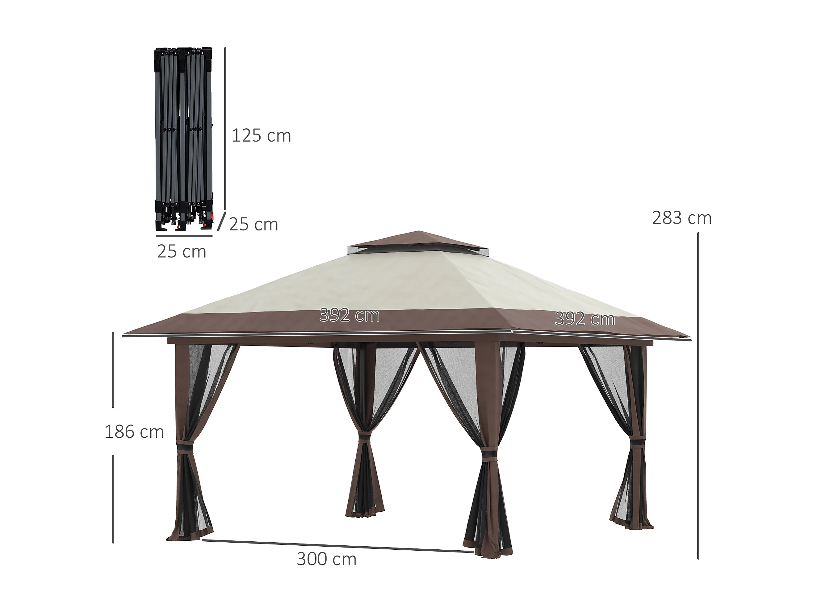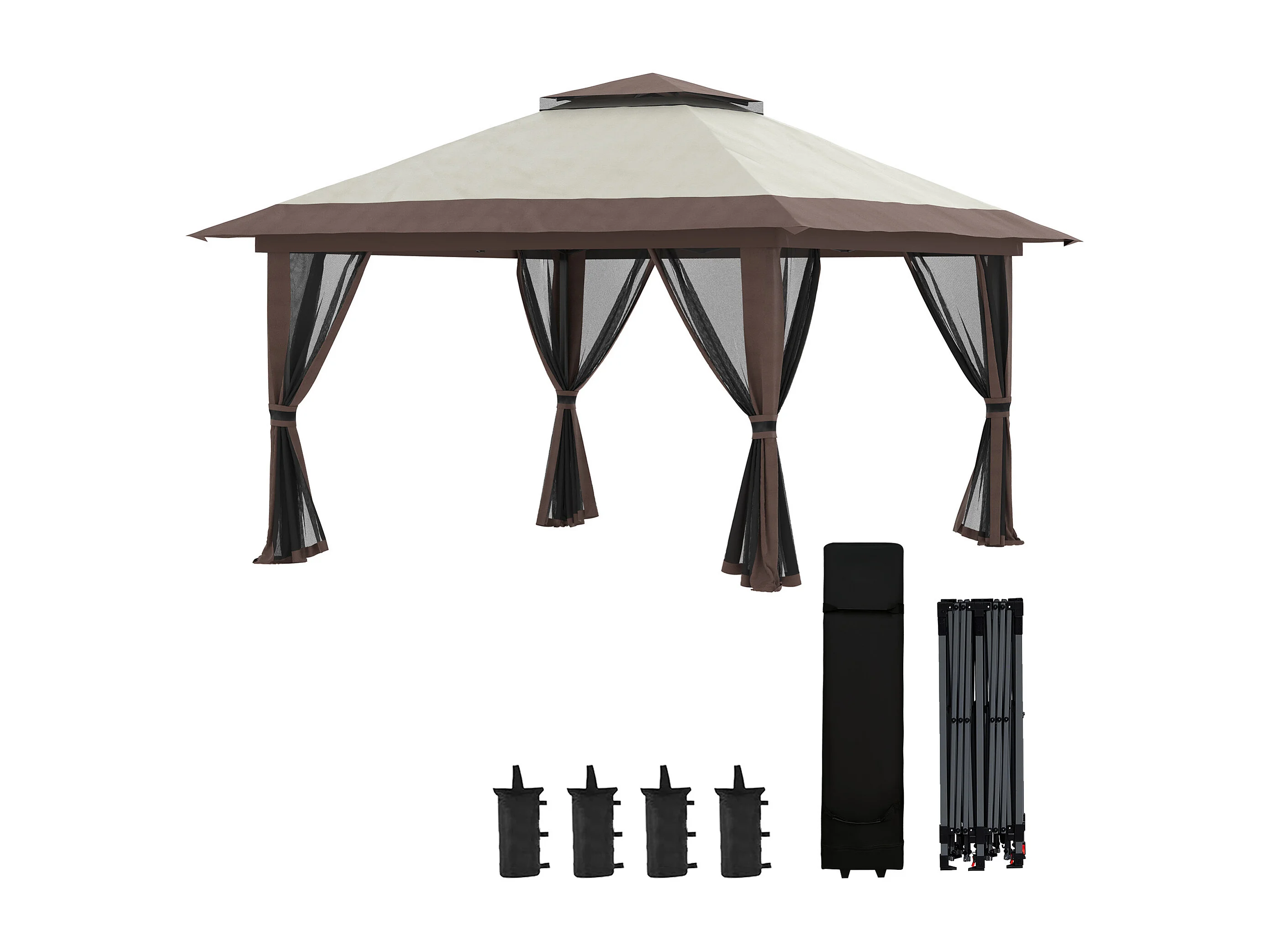 Tonnelle barnum de jardin pop-up pliant 3,92L x 3,92l x 2,83H m sacs de lestage et transport inclus beige