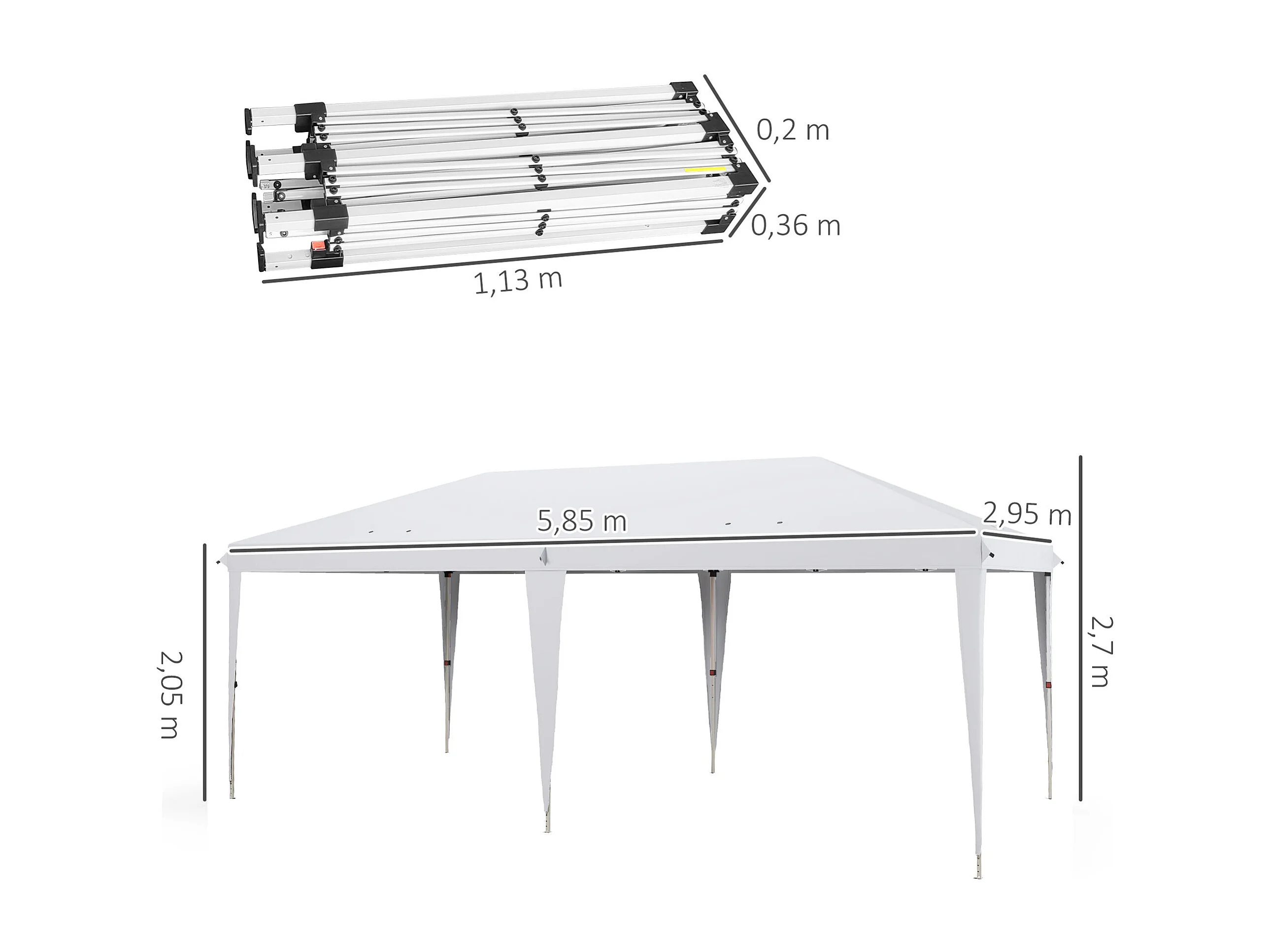 Tonnelle barnum de jardin pop-up pliant 5,85L x 2,95l x 2,7H m sac inclus acier époxy oxford haute densité blanc