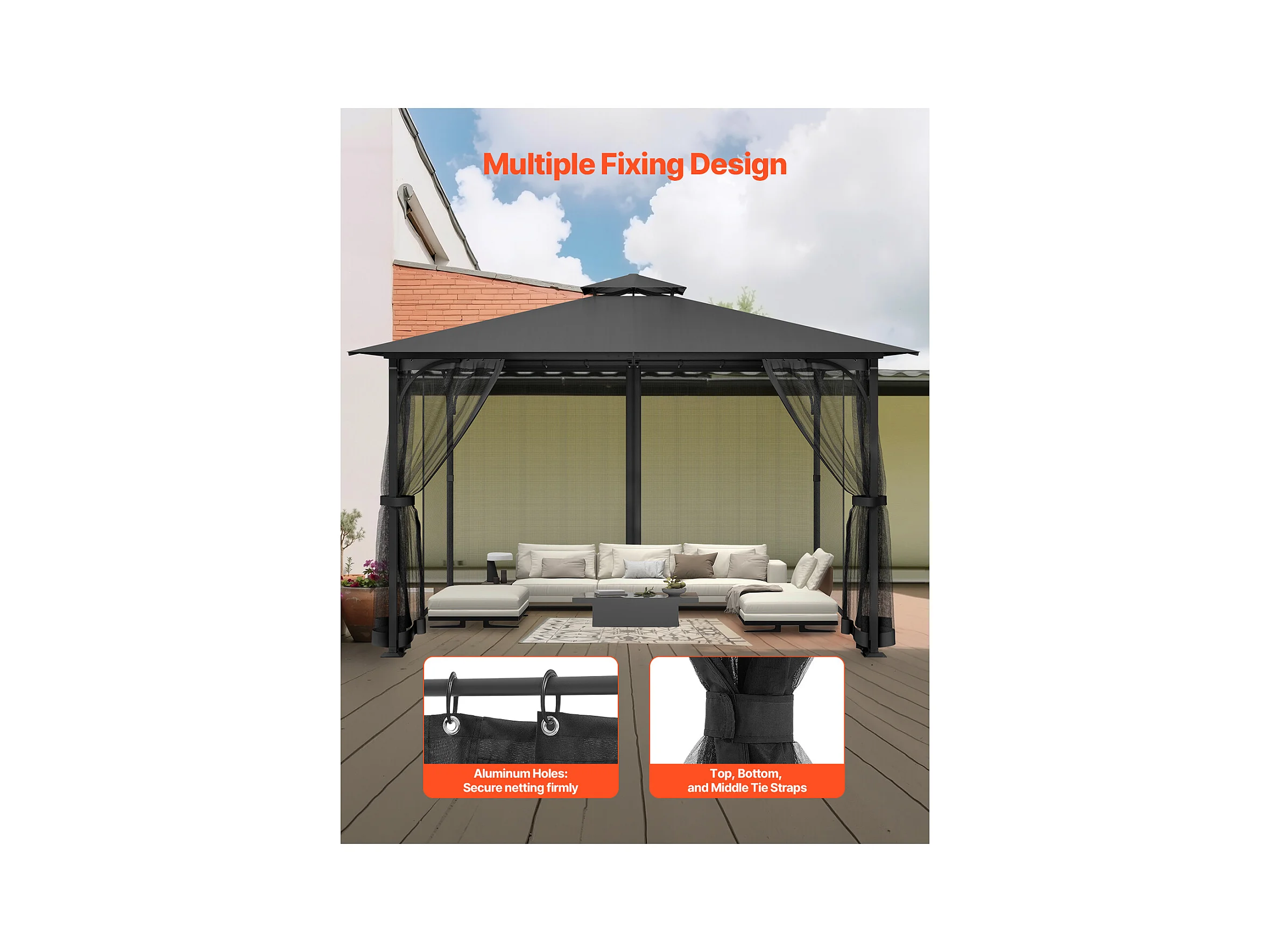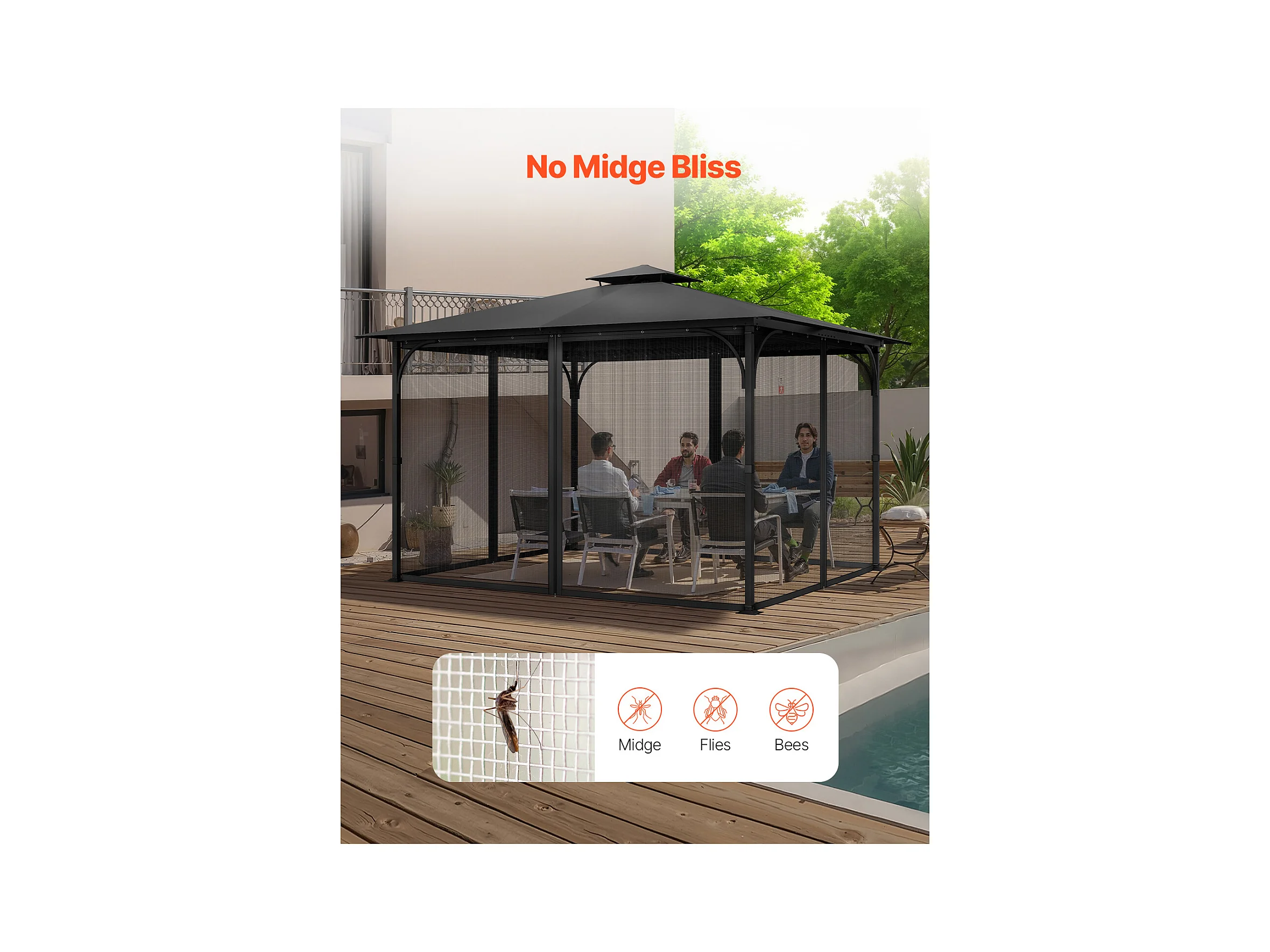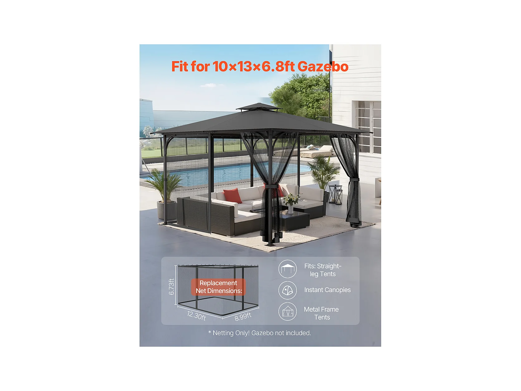 Tonnelle Barnum de Jardin SucceBuy Moustiquaire pour Tonnelle de Jardin 304,8 x 396,2 x 207,3 cm, Filet Uniquement