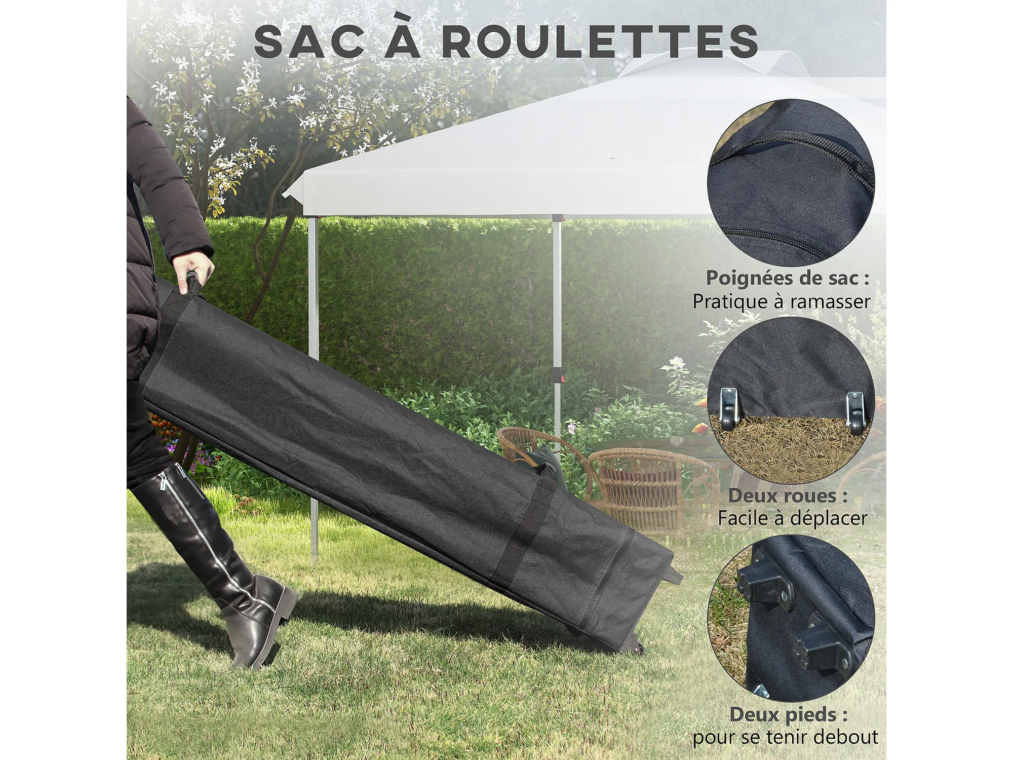 Tonnelle barnum pop-up pliant 3 x 3 m sac de transport à roulettes blanc