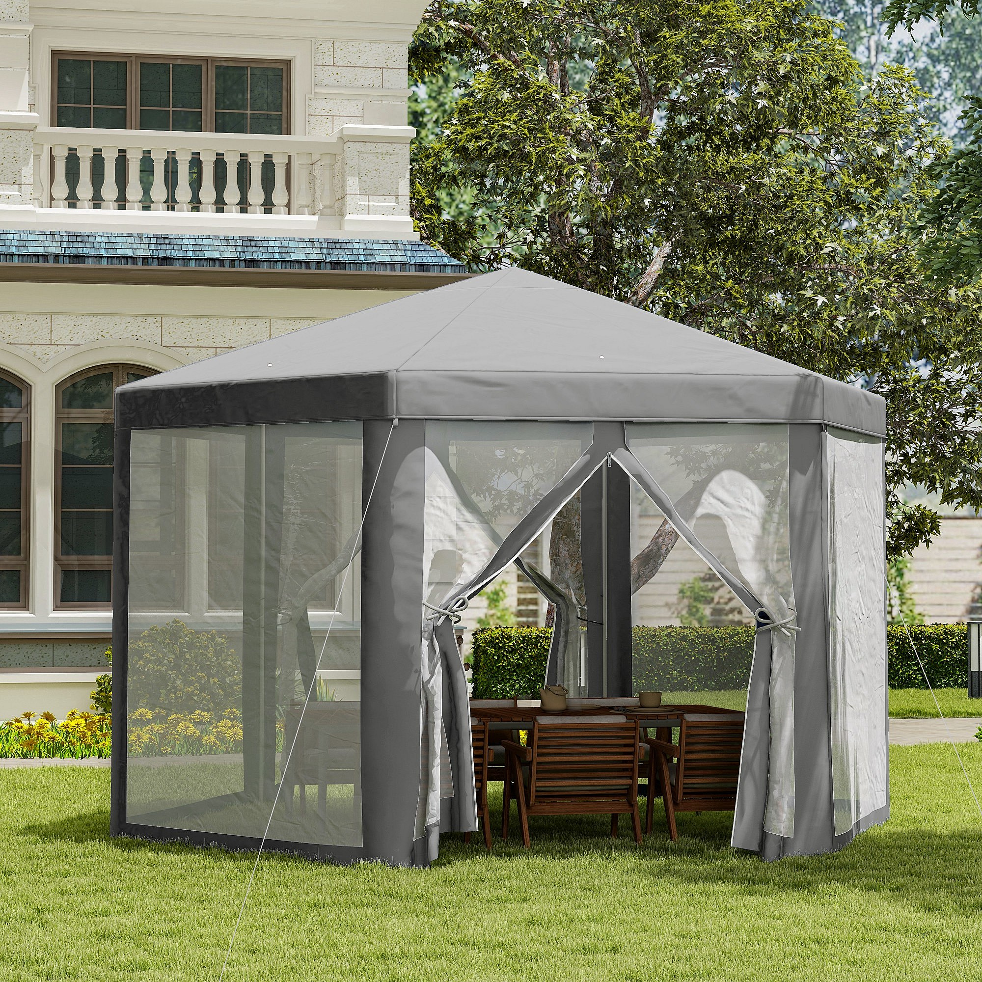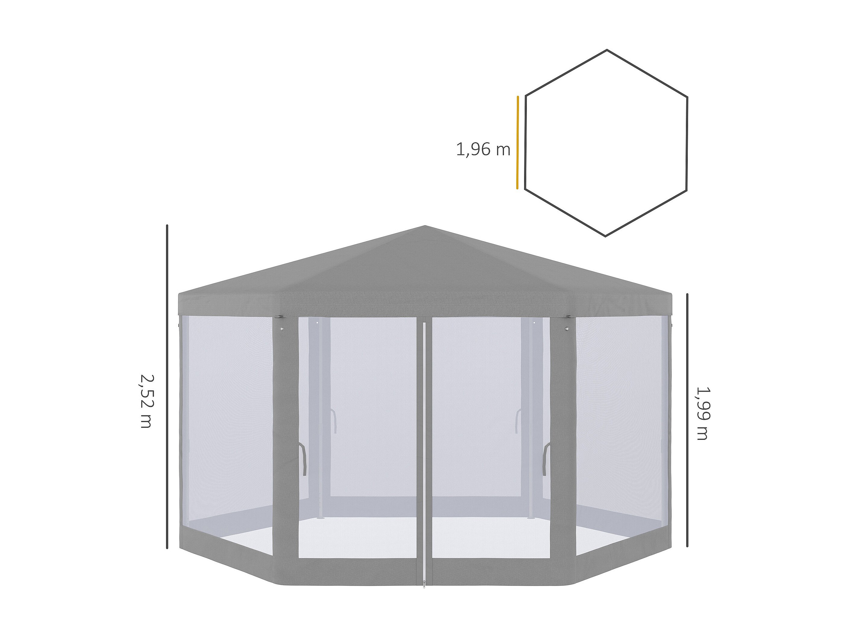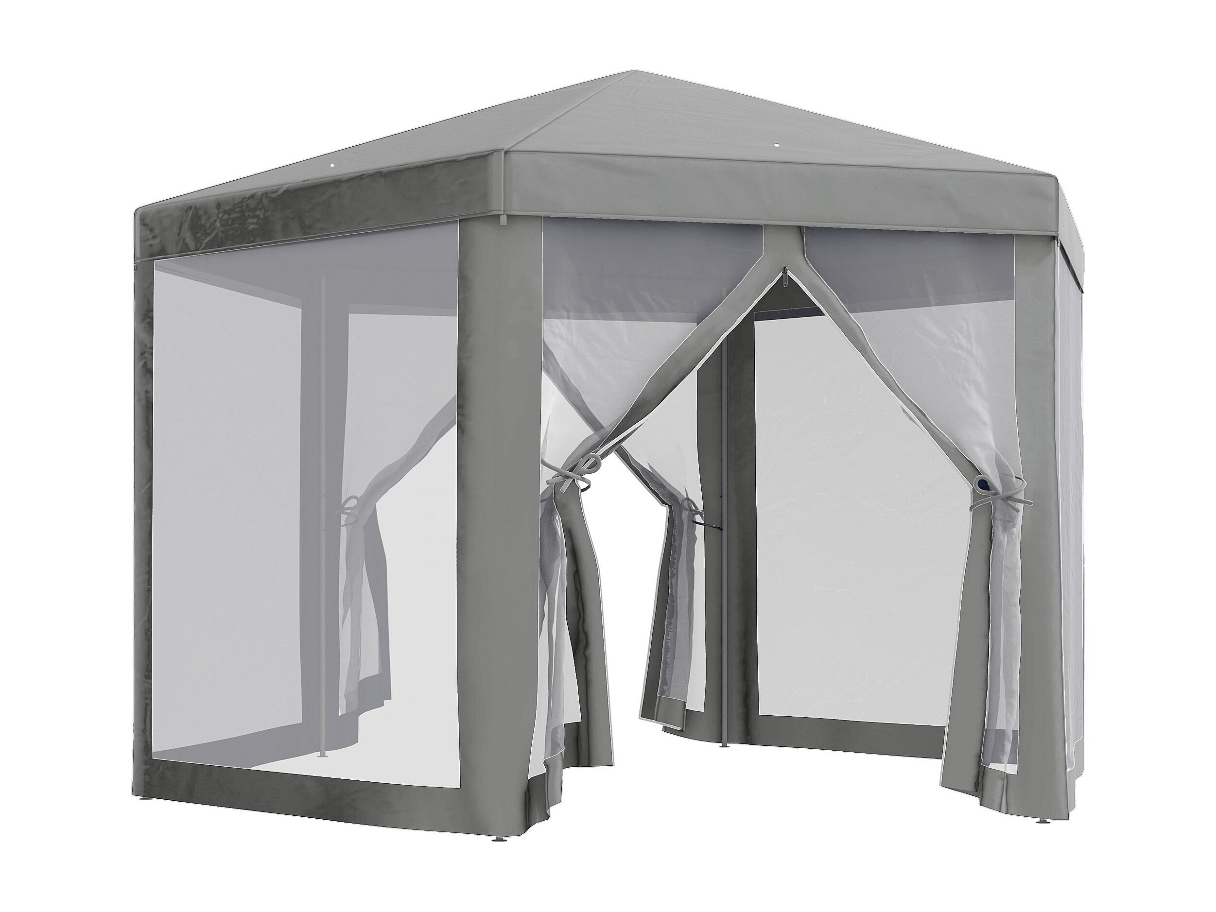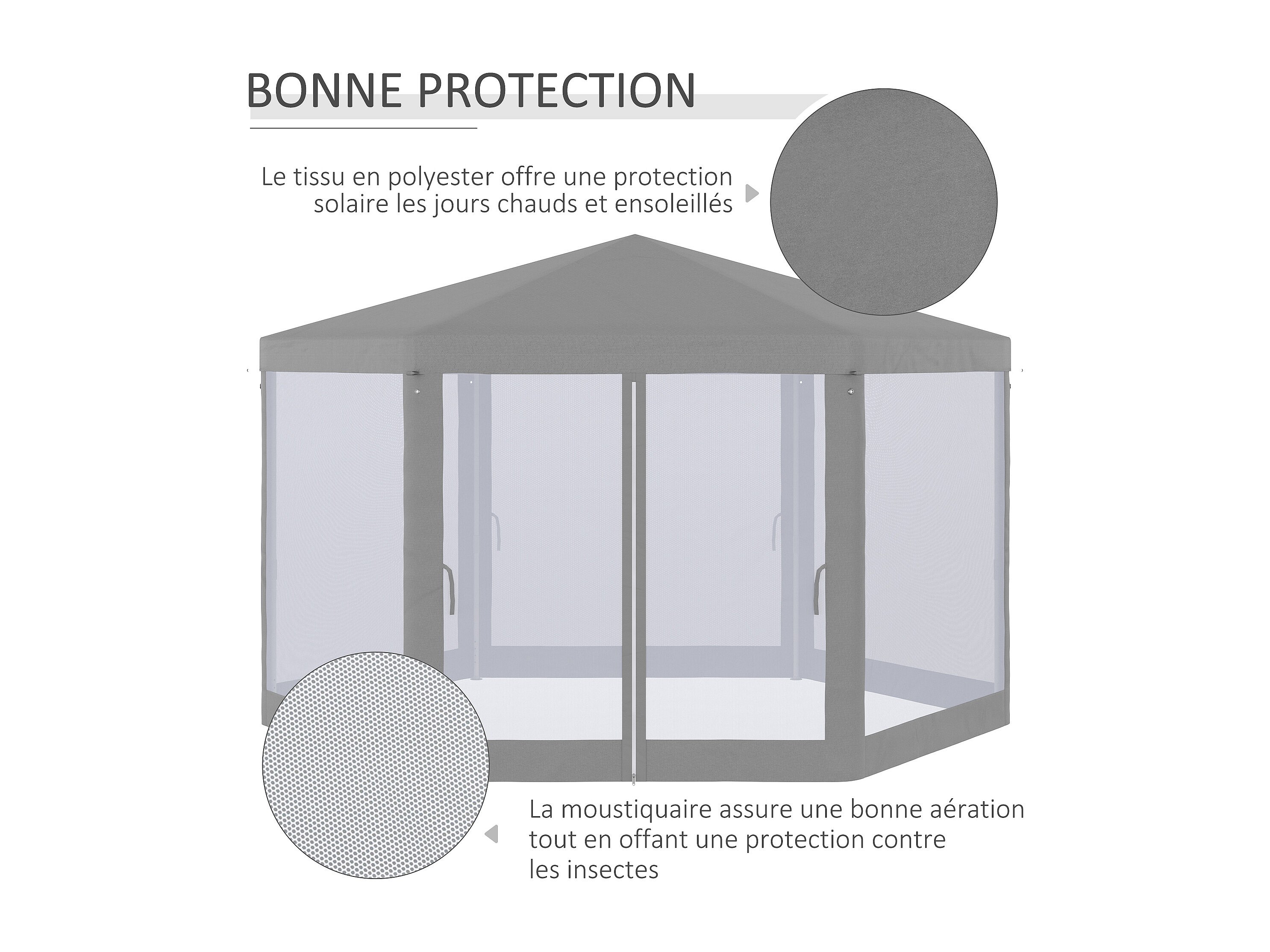 Tonnelle barnum tente de réception hexagonale style cosy métal polyester imperméabilisé surface env. 10 m² gris