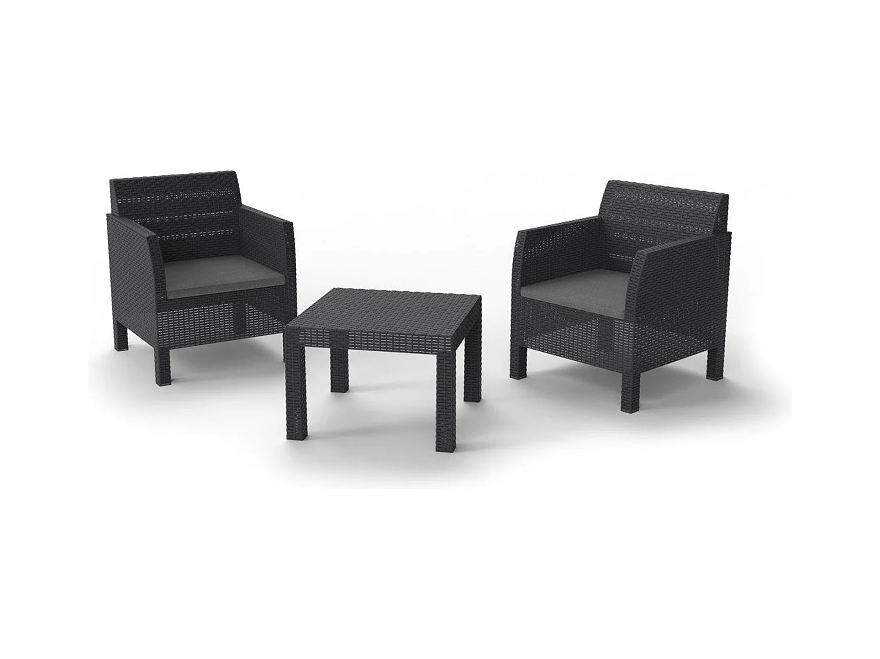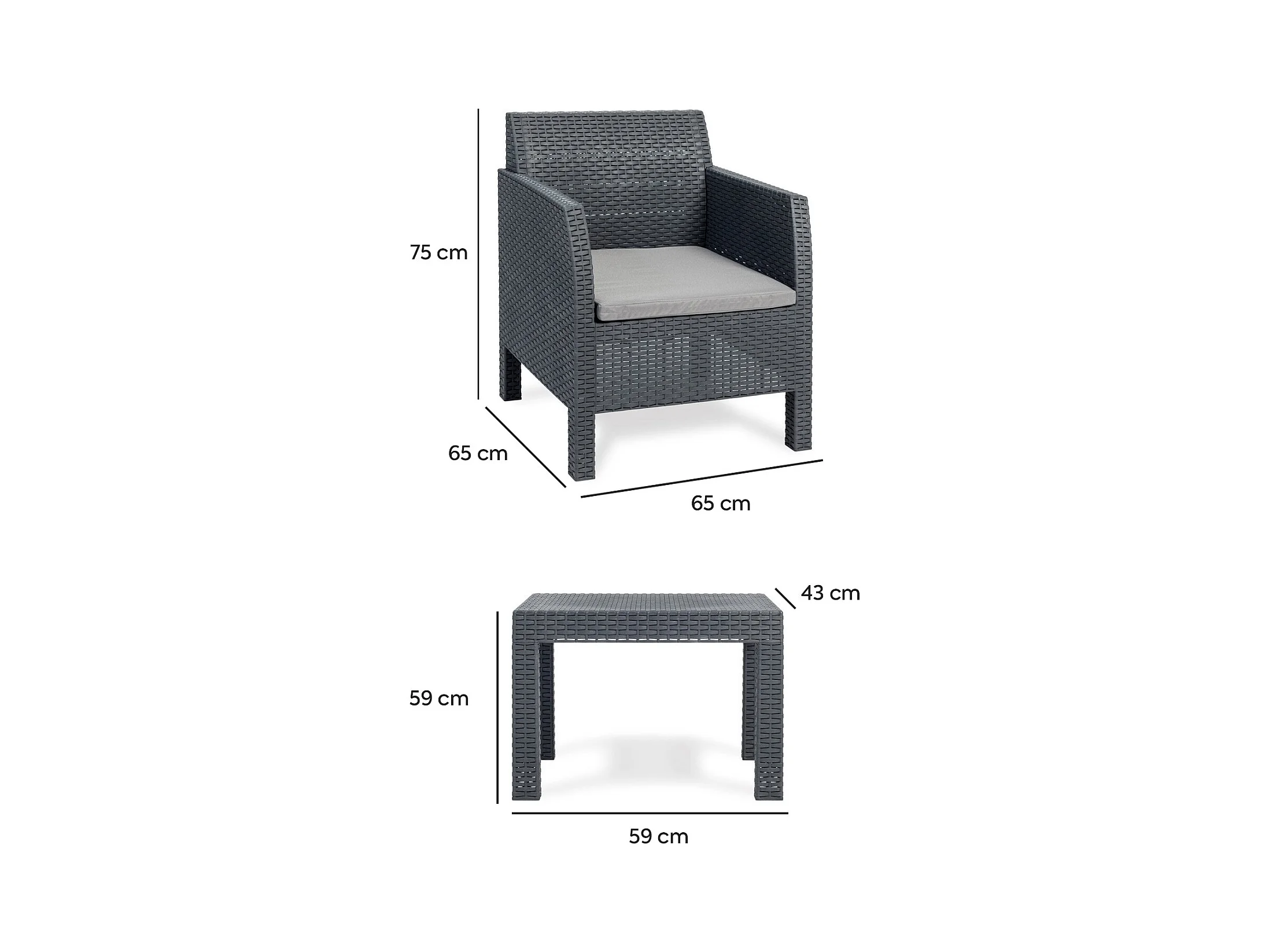 Toomax Matilde 2 Ensemble de Jardin et Terrasse composé de 2 Fauteuils avec Coussin 65x65x75 cm + Table Basse 59x59x43 cm Effet Rotin