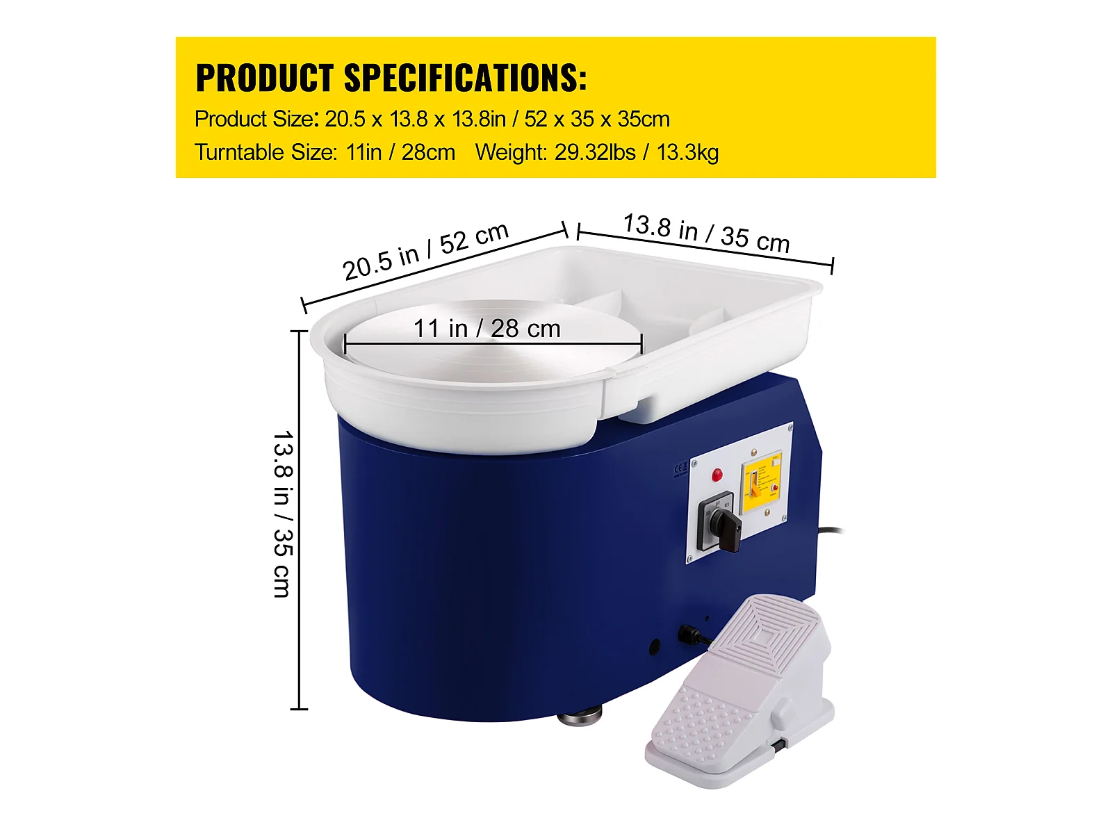 Tour de Potier SucceBuy Tour de Potier 28cm, Outil de Sculpture en Céramique avec Pédale, 350 W