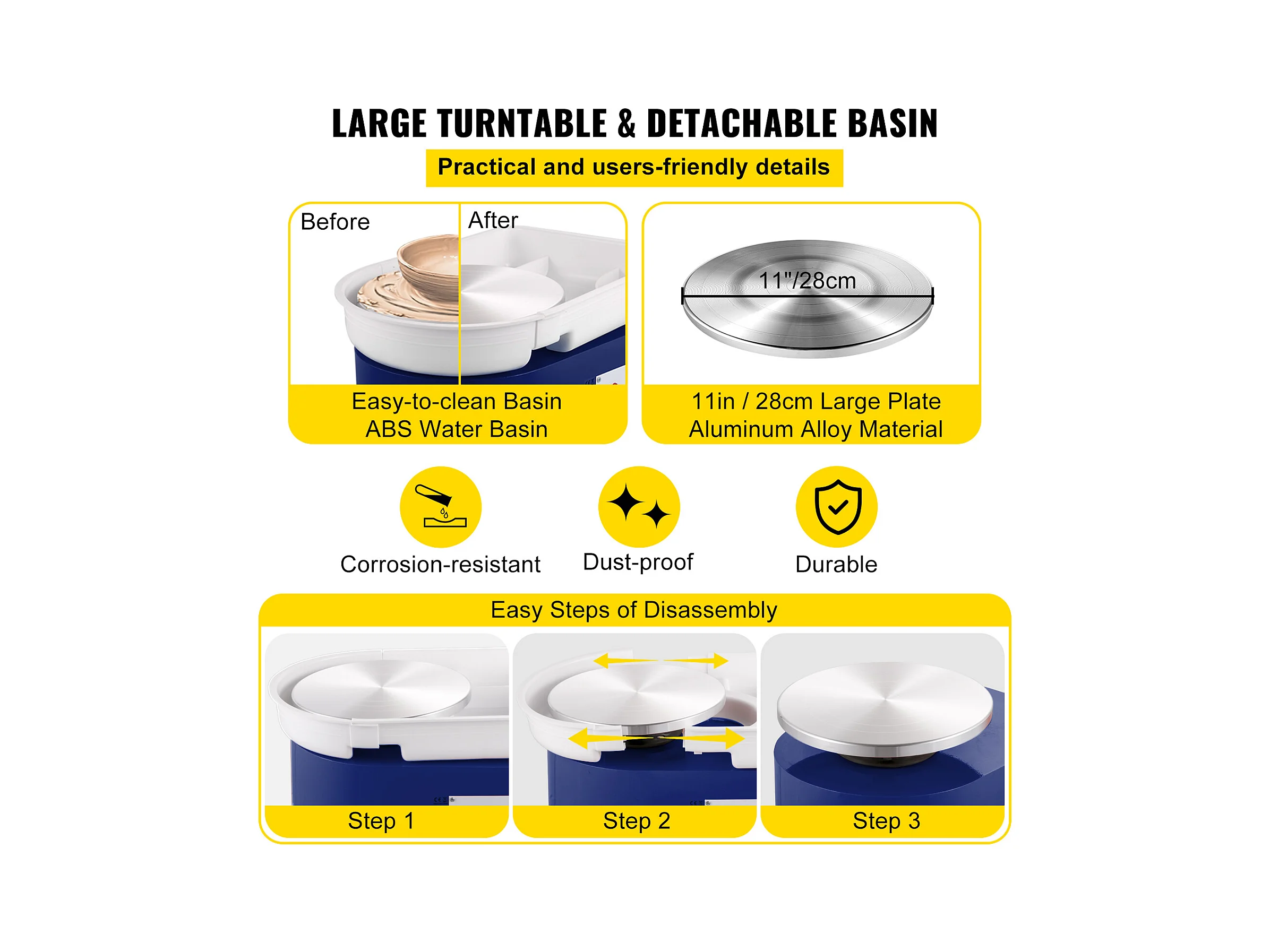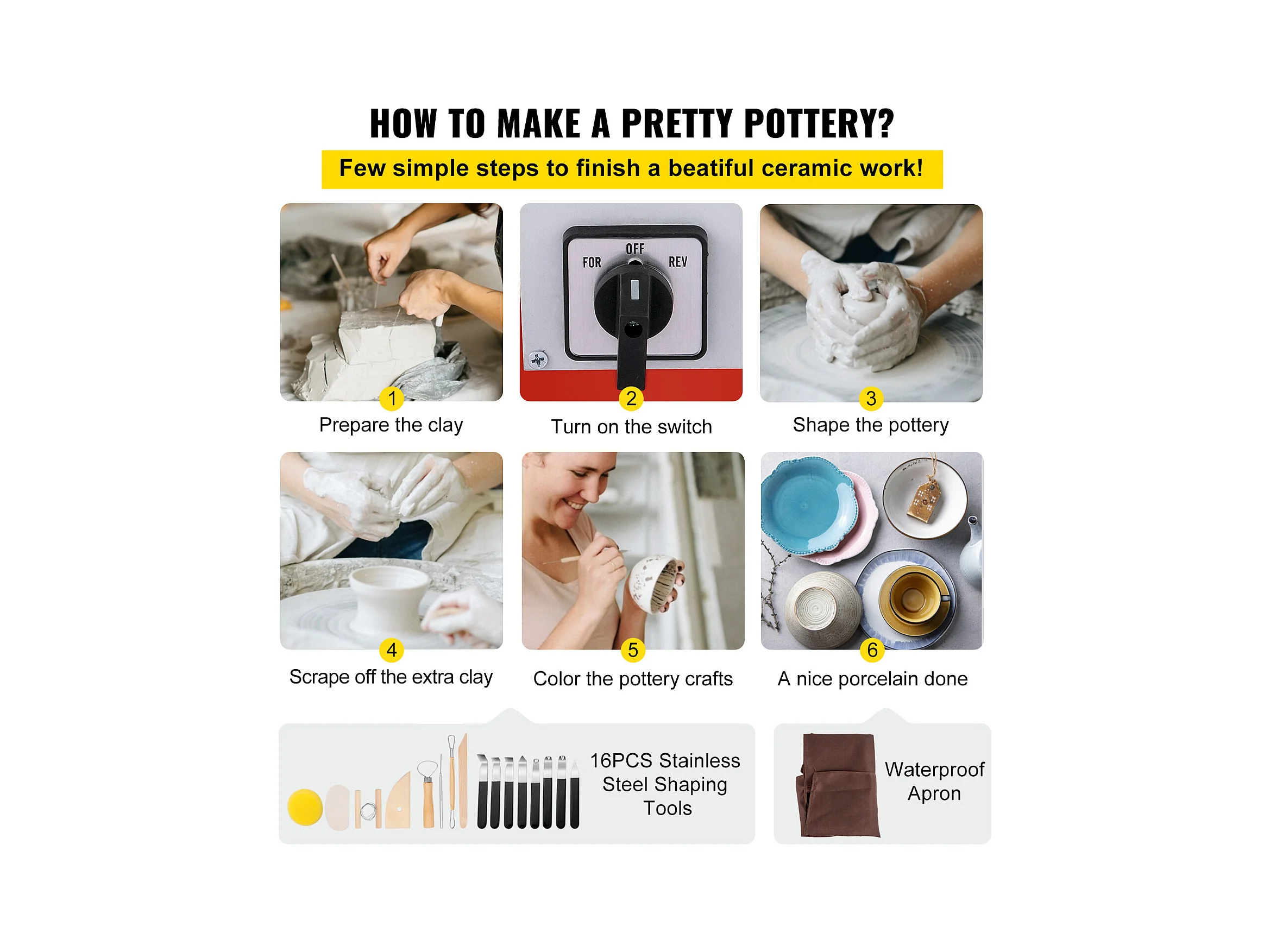 Tour de Potier SucceBuy Mini Tour de Potier, Outil de Sculpture en Céramique 30 W, Tablier et Deux Platines