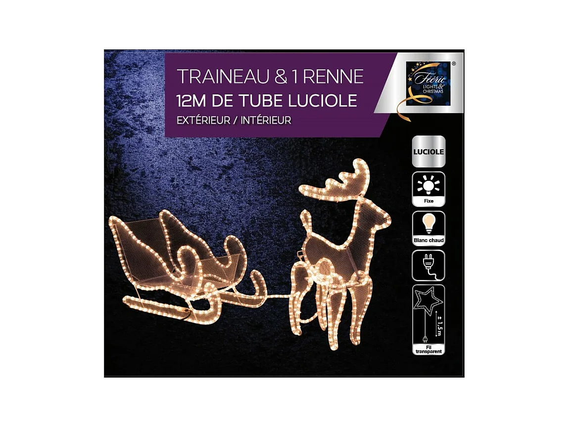 Déco Extérieur Intérieur Traineau et Renne en Tube Lumineux 240 LED Blanc chaud