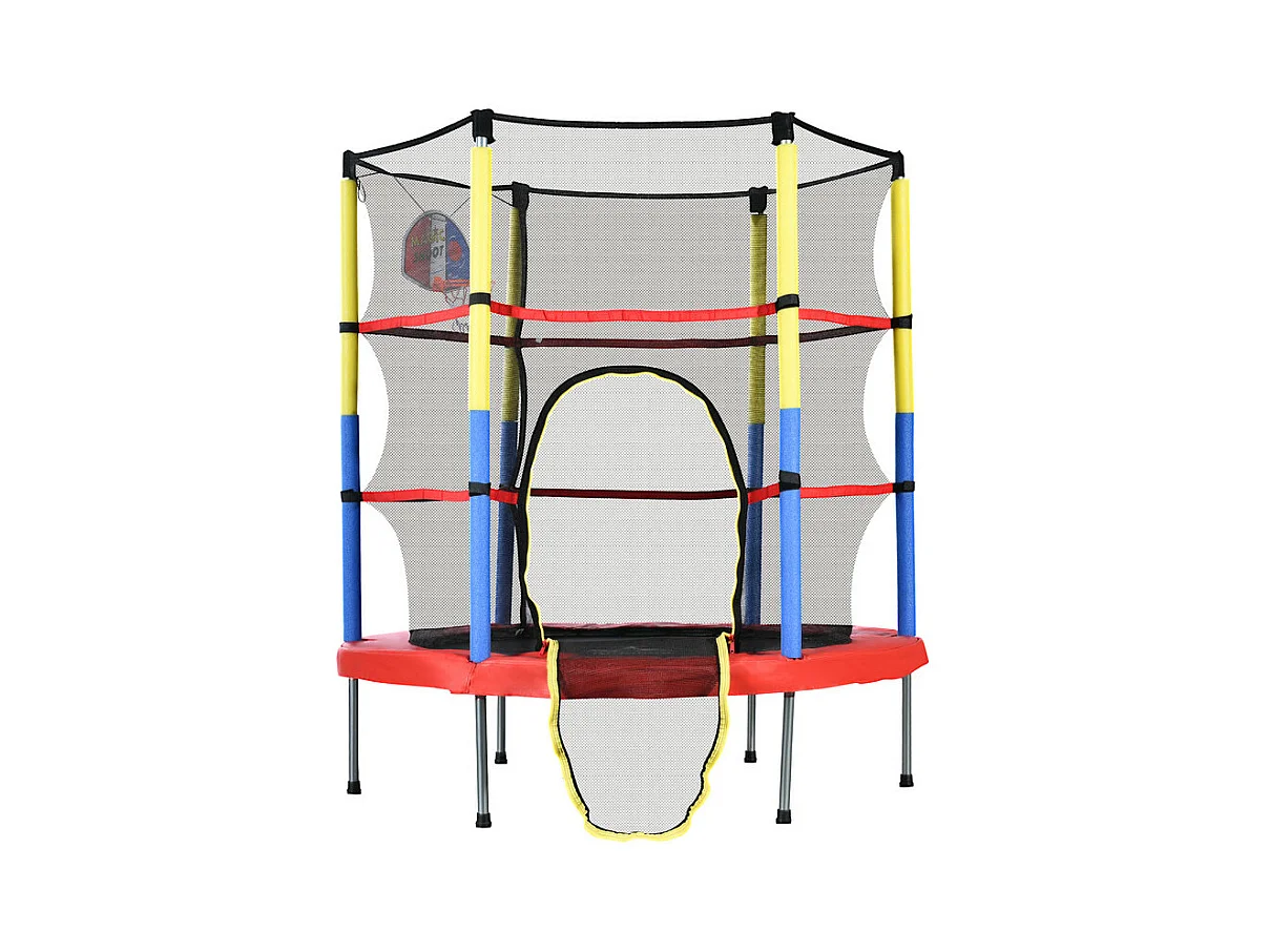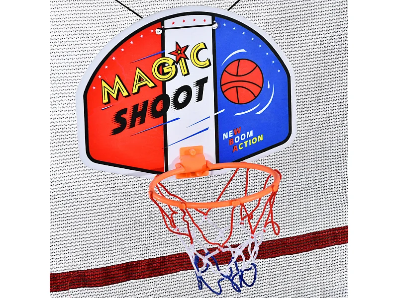 Trampoline de jardin rond en acier - 140cm - avec panier de basket et 2 balles de panier - charge max 45kg - 3 à 6 ans