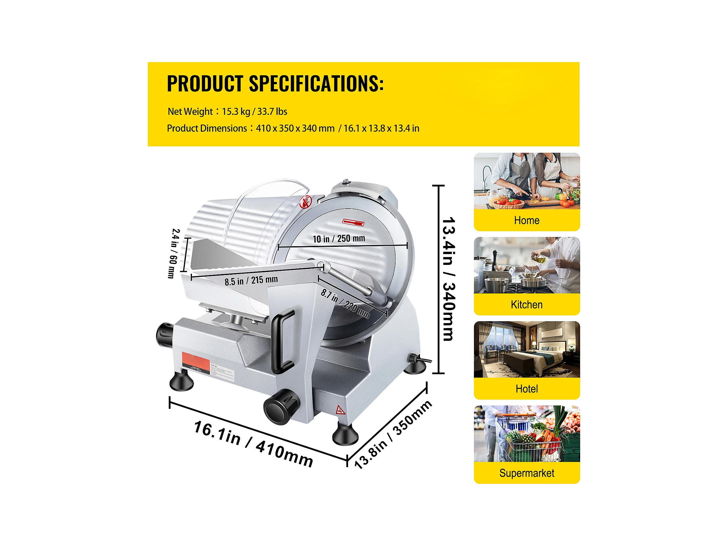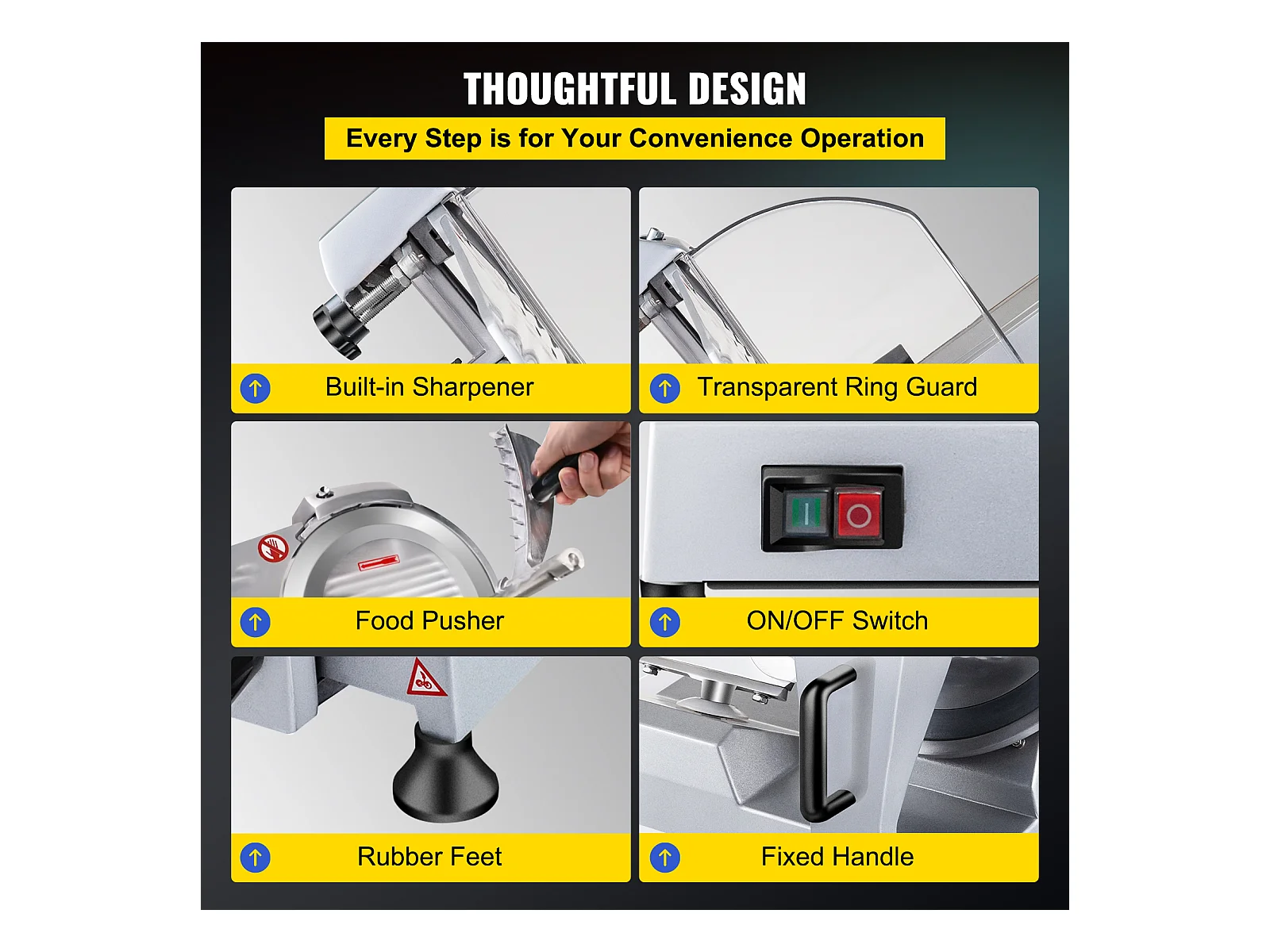 Trancheur SucceBuy Trancheuse à Viande Électrique Commerciale, Lame de 25.4 CM, 240 W, 350-400 Tr/Min