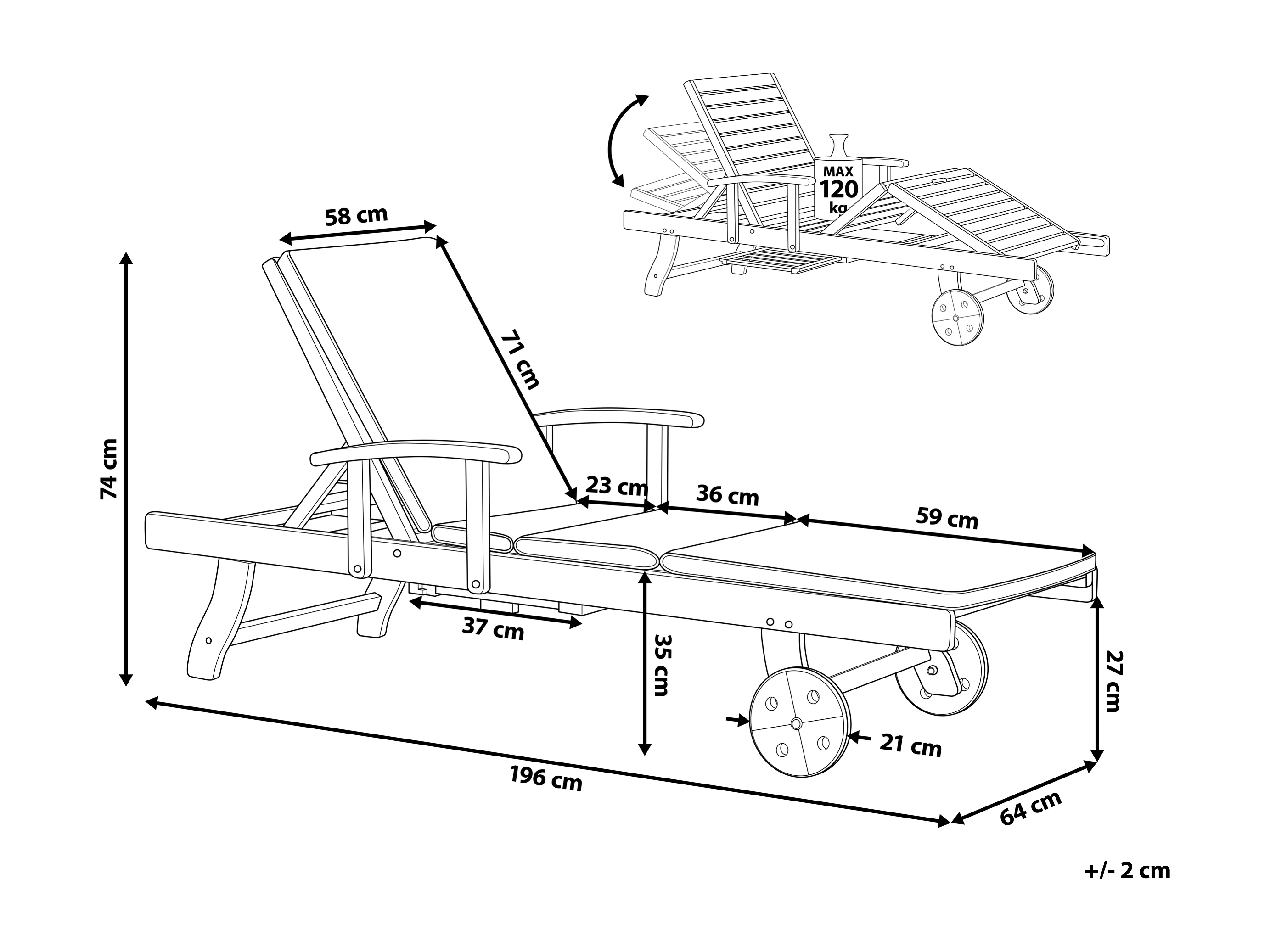 Transat avec coussin AMANTEA PREMIUM II Acacia Gris clair