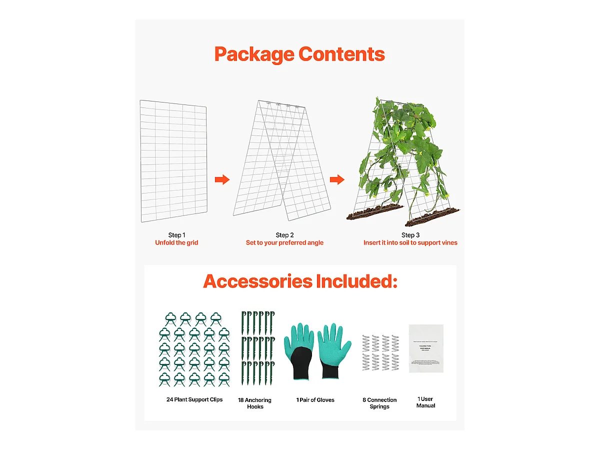 Treillis pour Concombres SucceBuy Treillis à Concombre en Forme de A 89 x 140 cm, Support de Jardin en Métal Pliable