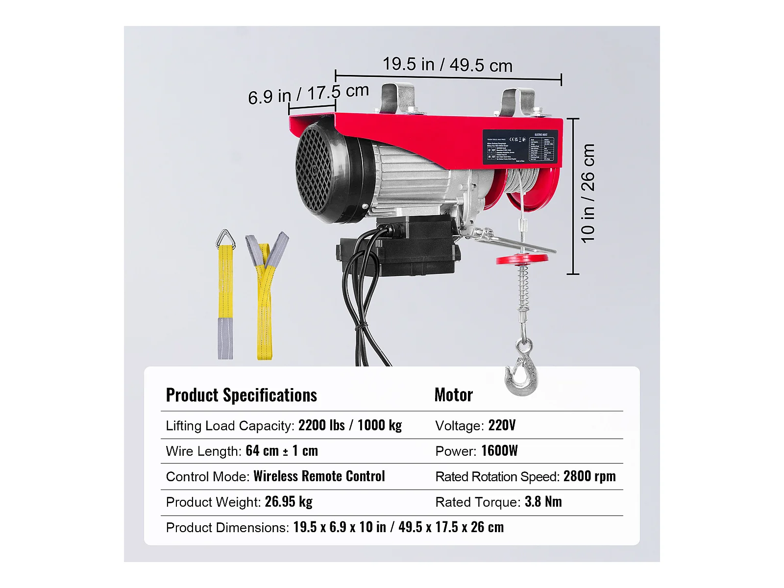 Treuil Électrique SucceBuy, Treuil de Grue de 2200 lbs, Télécommande Sans Fil, 1600 W, 220 V