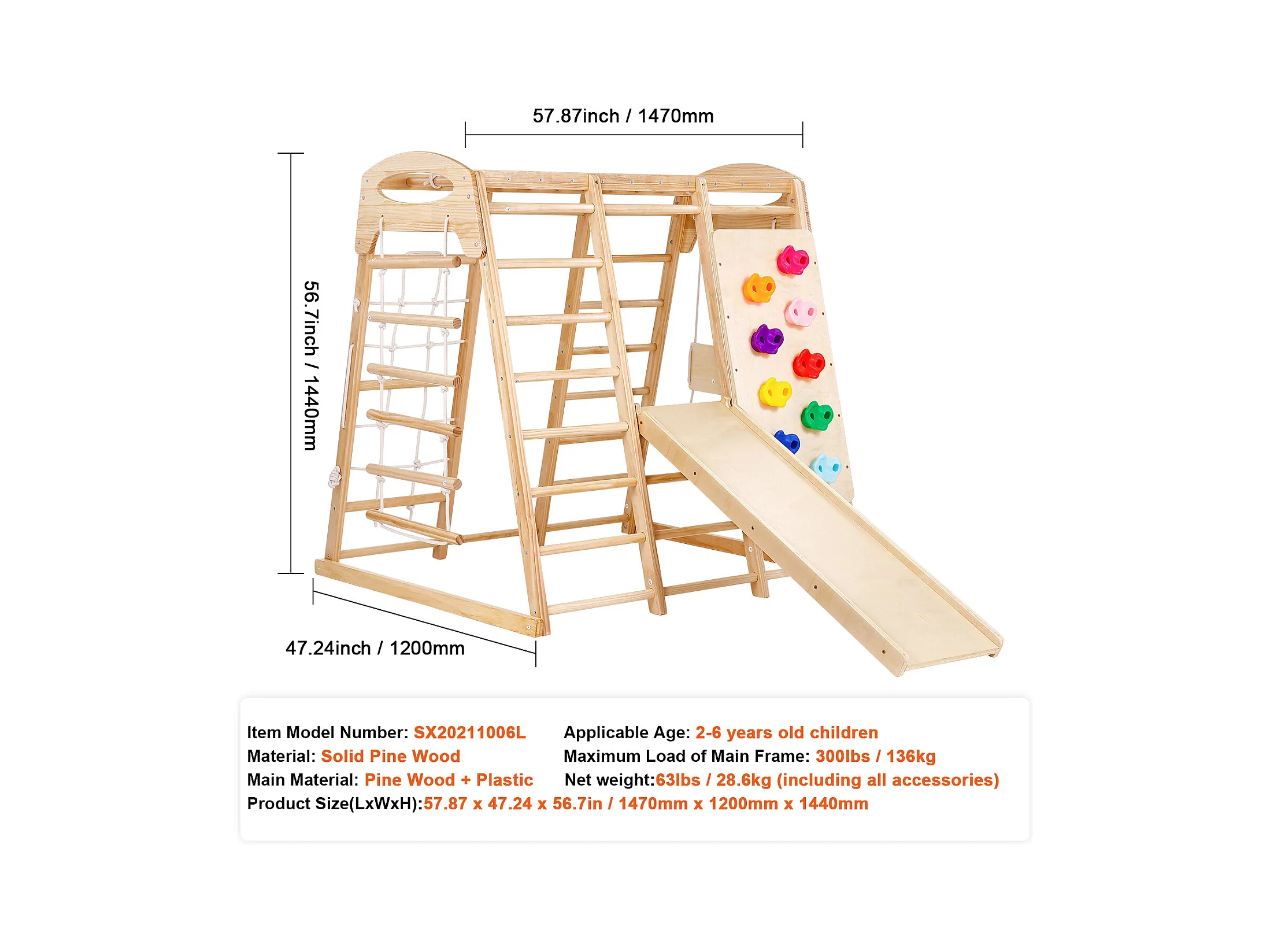 Triangle d'Escalade, SucceBuy Jungle Gym d'Intérieur 7 en 1, Aire de Jeux pour Tout-Petits, Jouets d'Escalade en Bois
