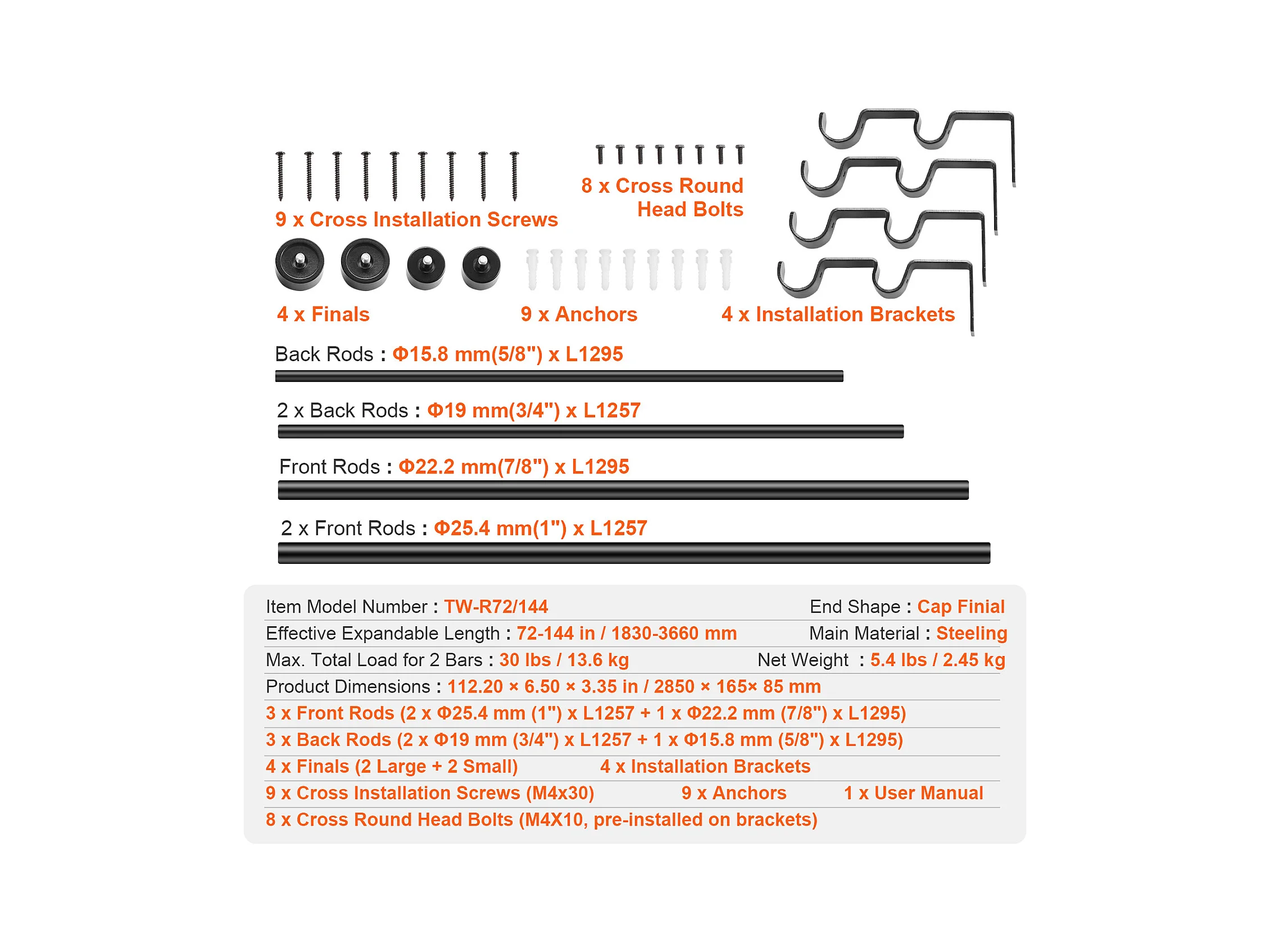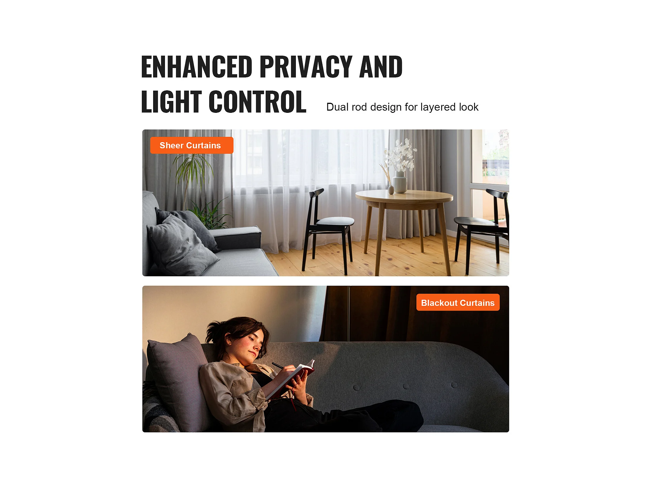 Tringles à Rideaux à Double Tige SucceBuy, de 183 à 366 cm de Longueur Réglable avec Embouts de Capuchon