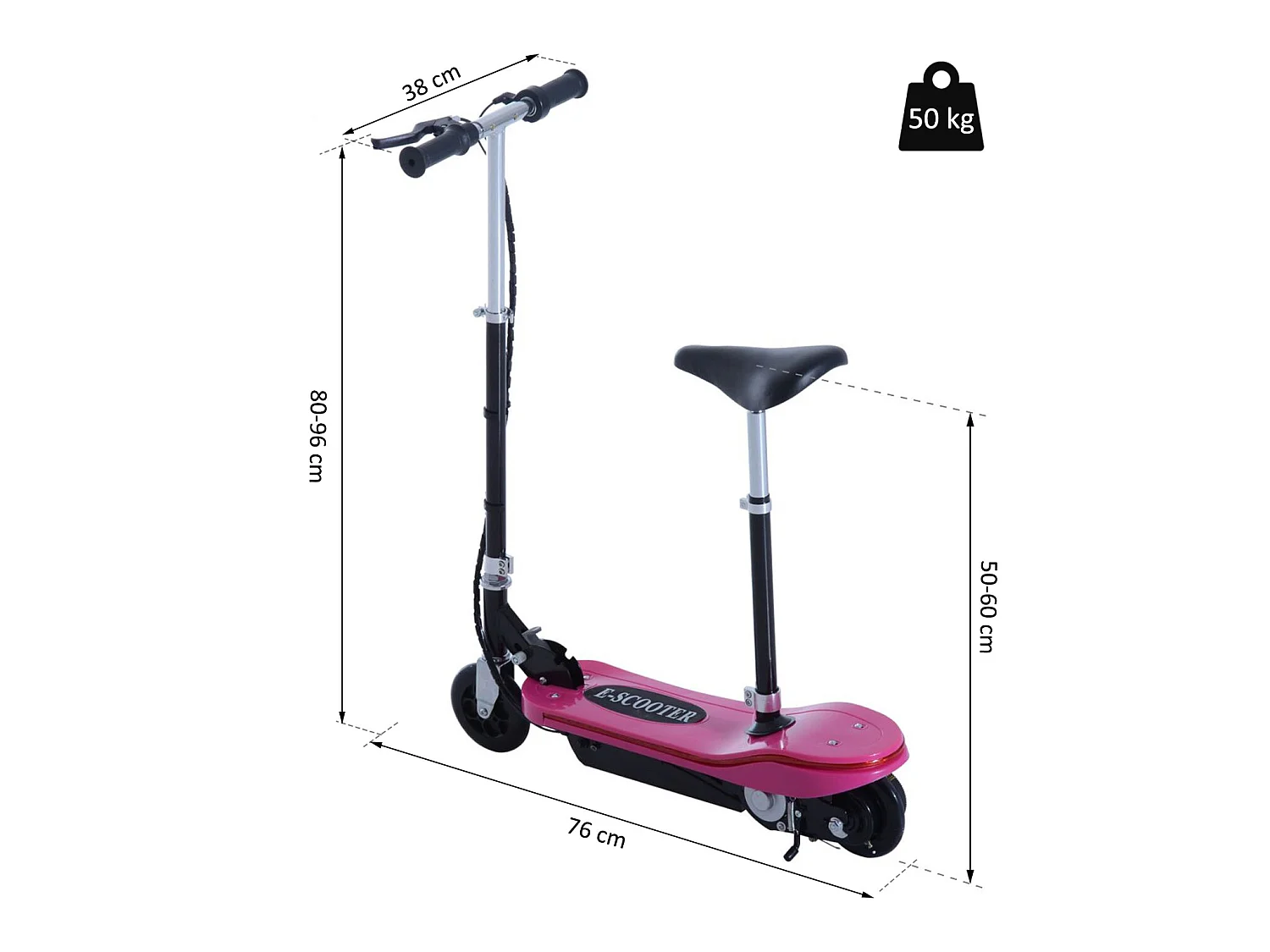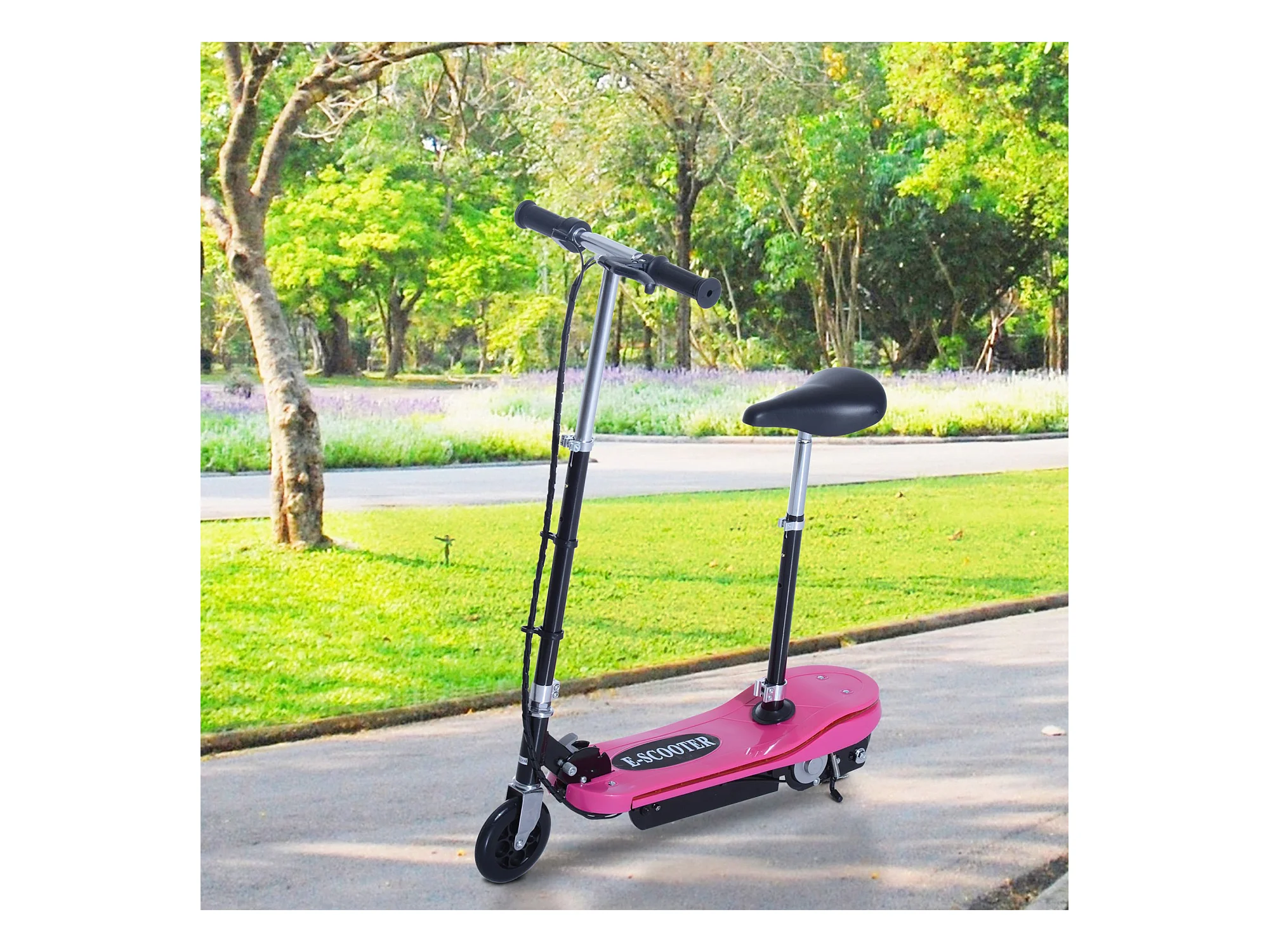 Trottinette électrique 120 W pliable pour enfant de 7 à 12 ans hauteur guidon et selle réglable 10 Km/h max. rose