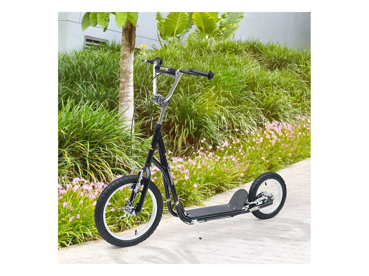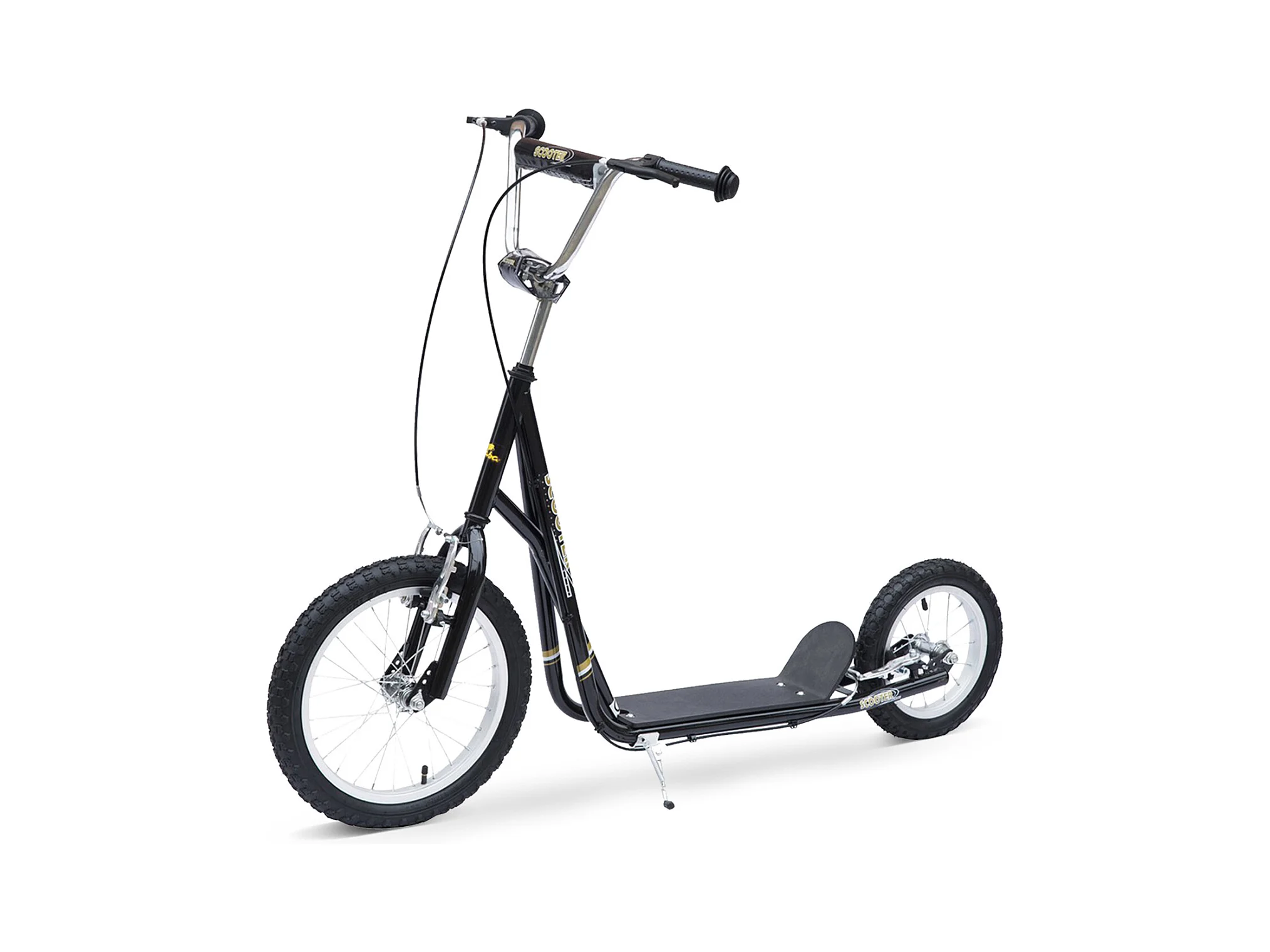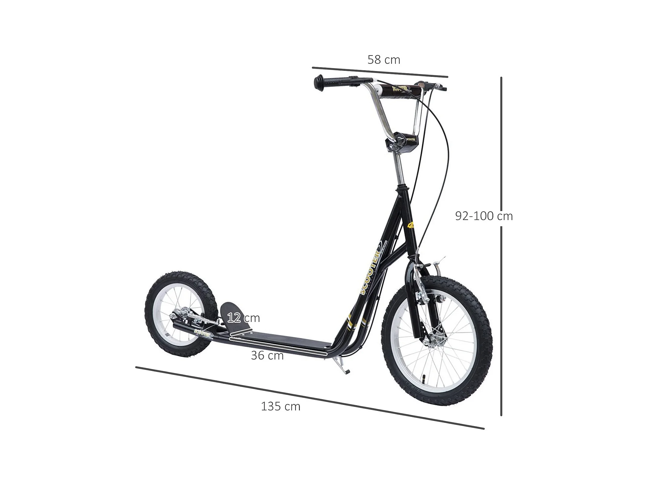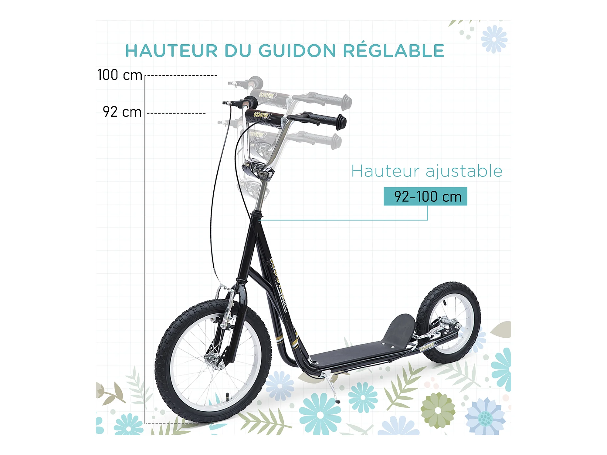 Trottinette patinette enfant à partir de 5 ans grands pneus guidon réglable poignées freins et béquille acier noir