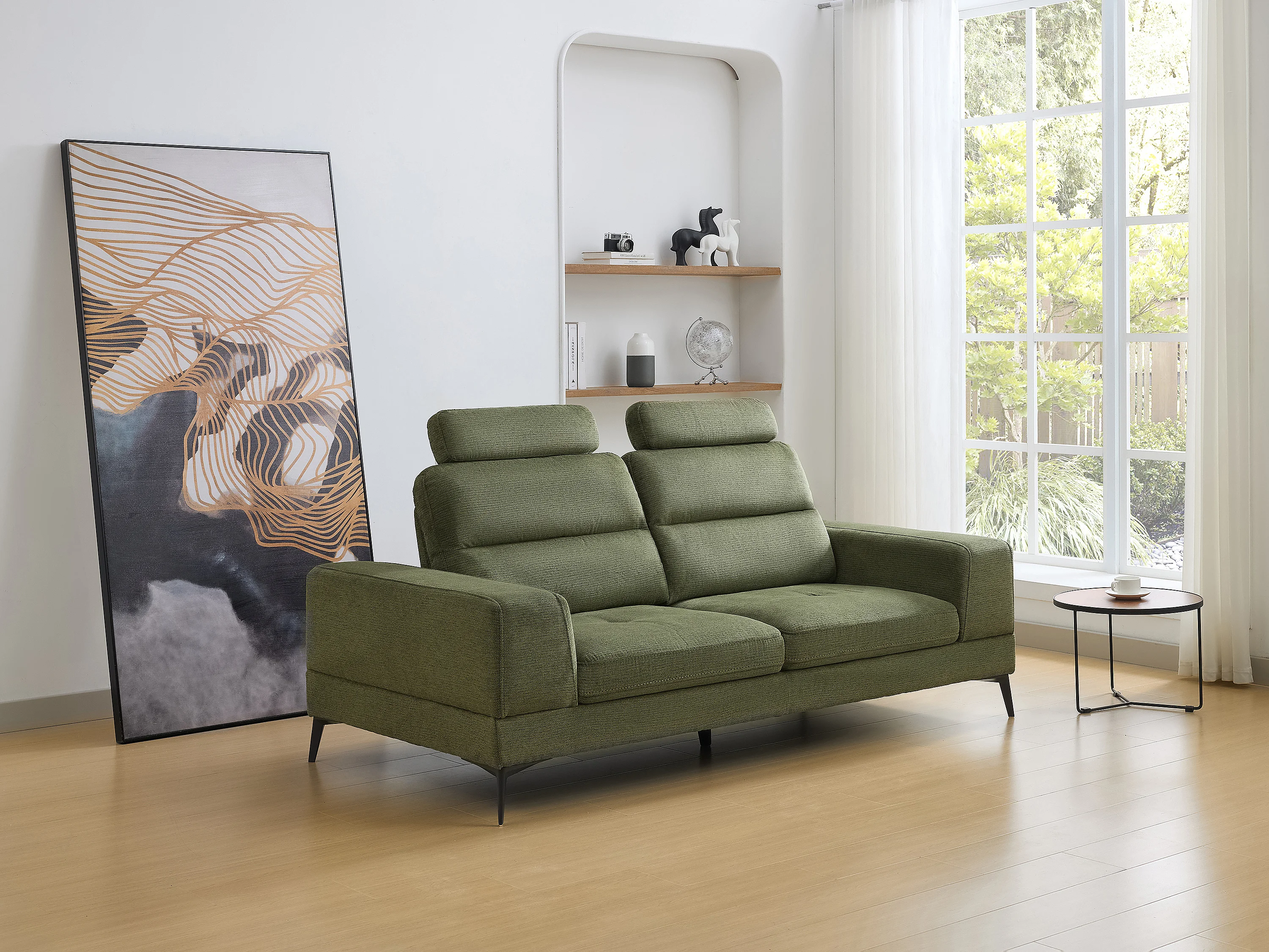 Canapé 3 places en tissu texturé vert avec dossier avance-recule UDALIO