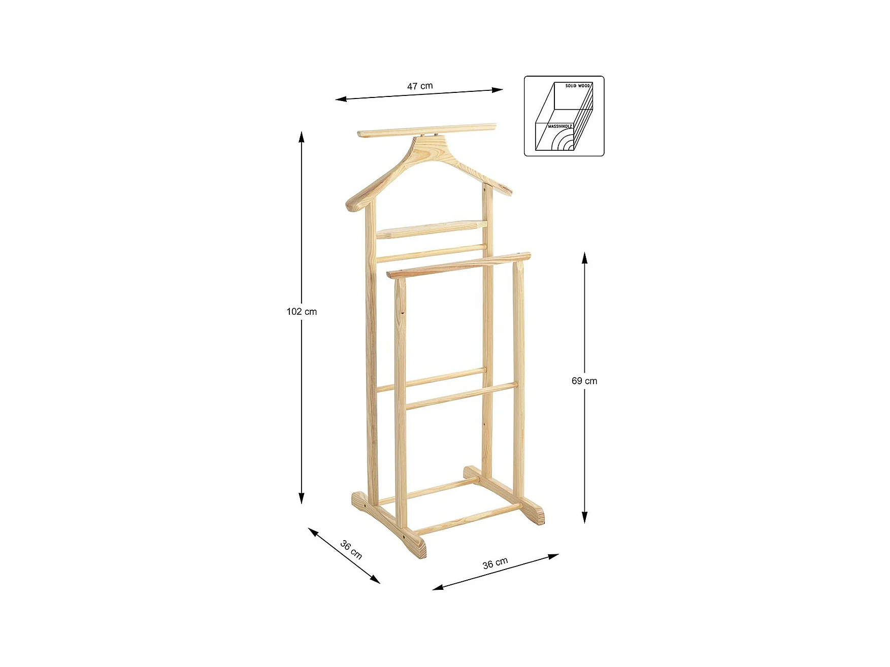 Valet en bois massif - H102 cm