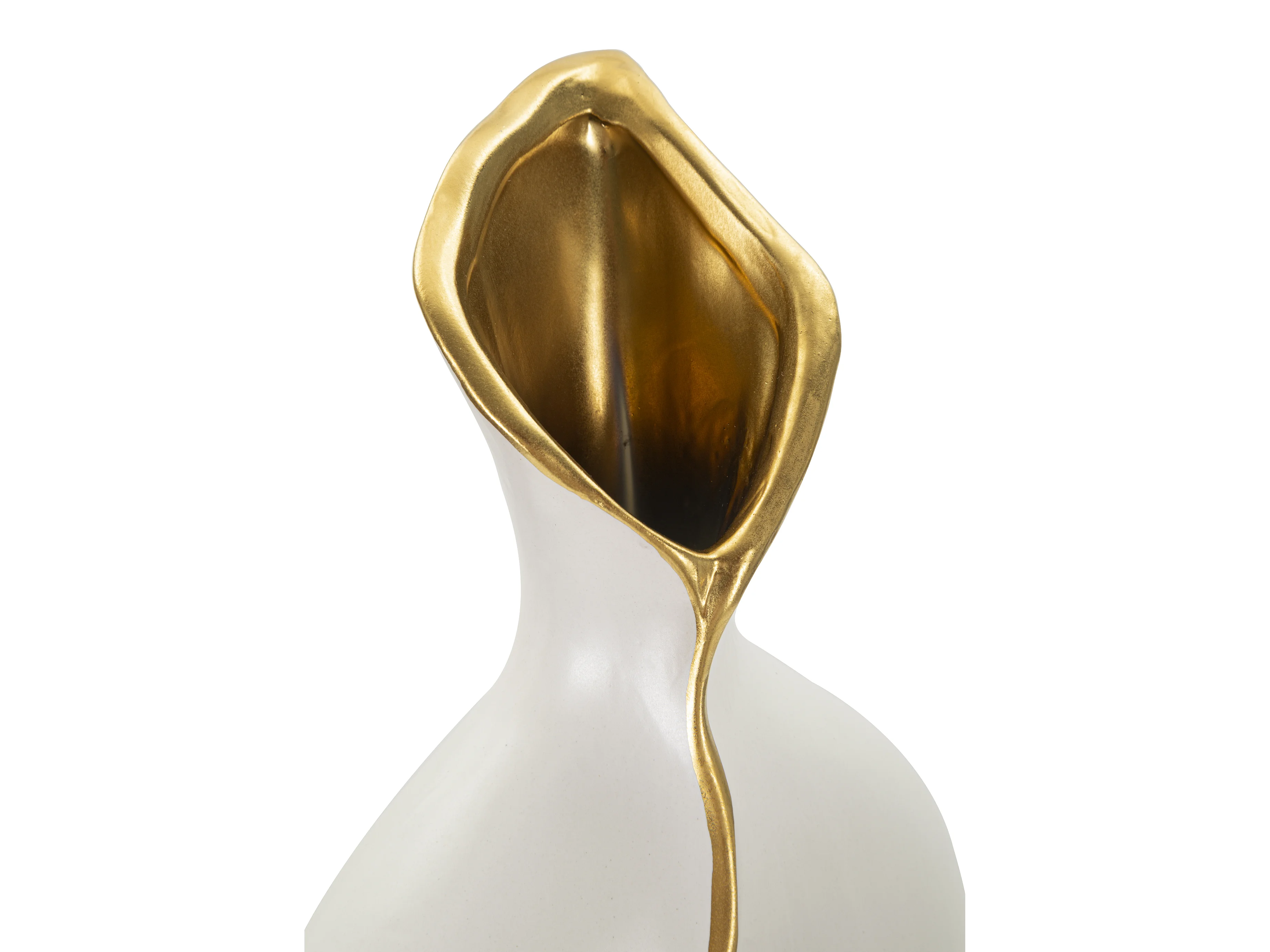 Lot de 2 Vases en Céramique "Blom" 23cm Or & Blanc