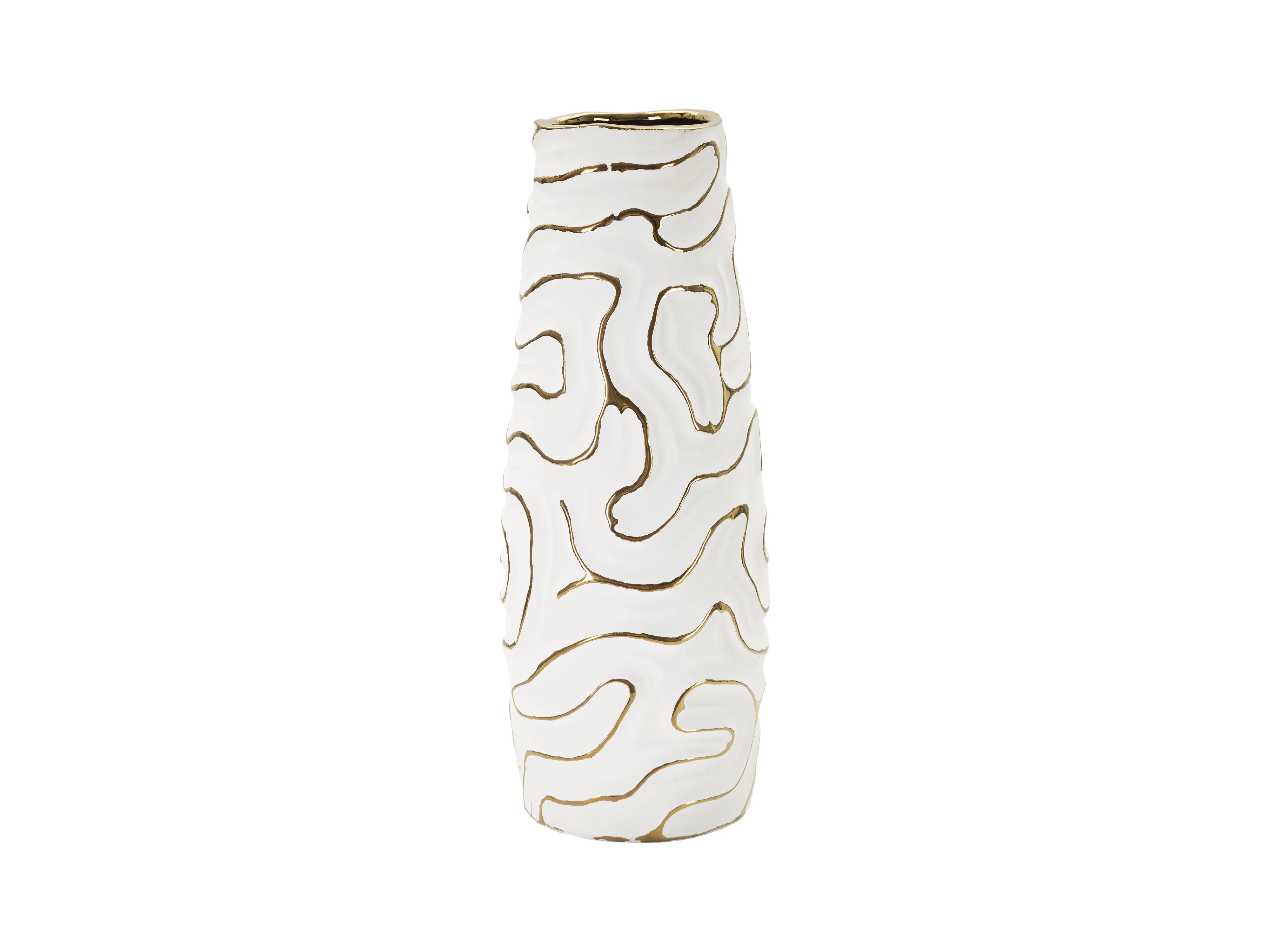 Lot de 2 Vases en Céramique "Melody" 24cm Or & Blanc