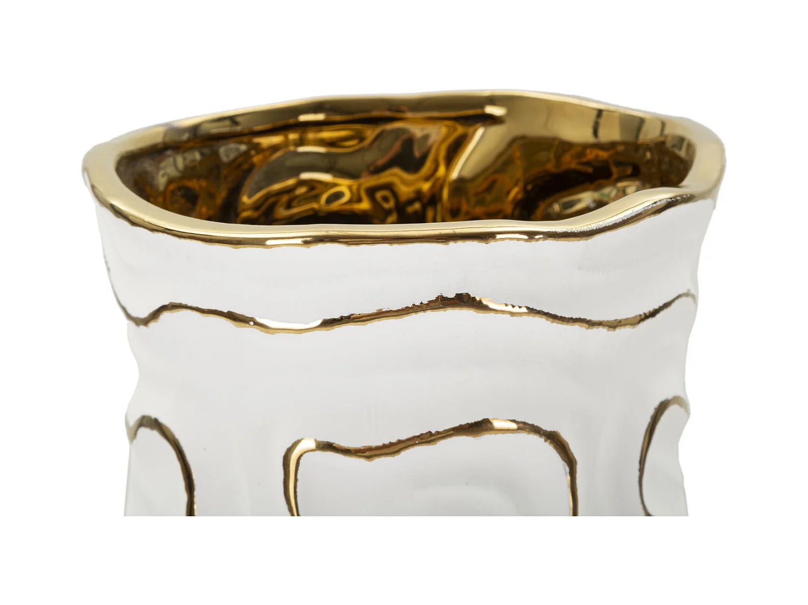 Lot de 2 Vases en Céramique "Melody" 24cm Or & Blanc