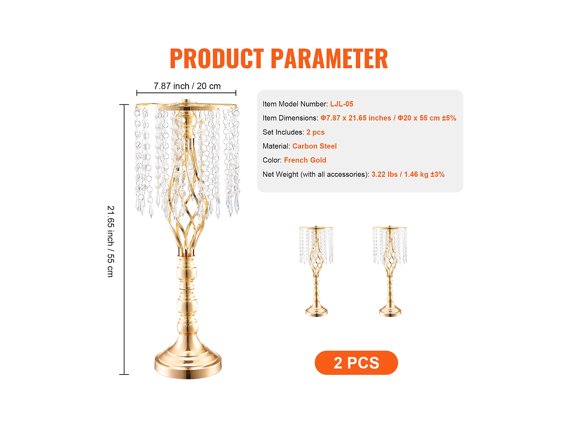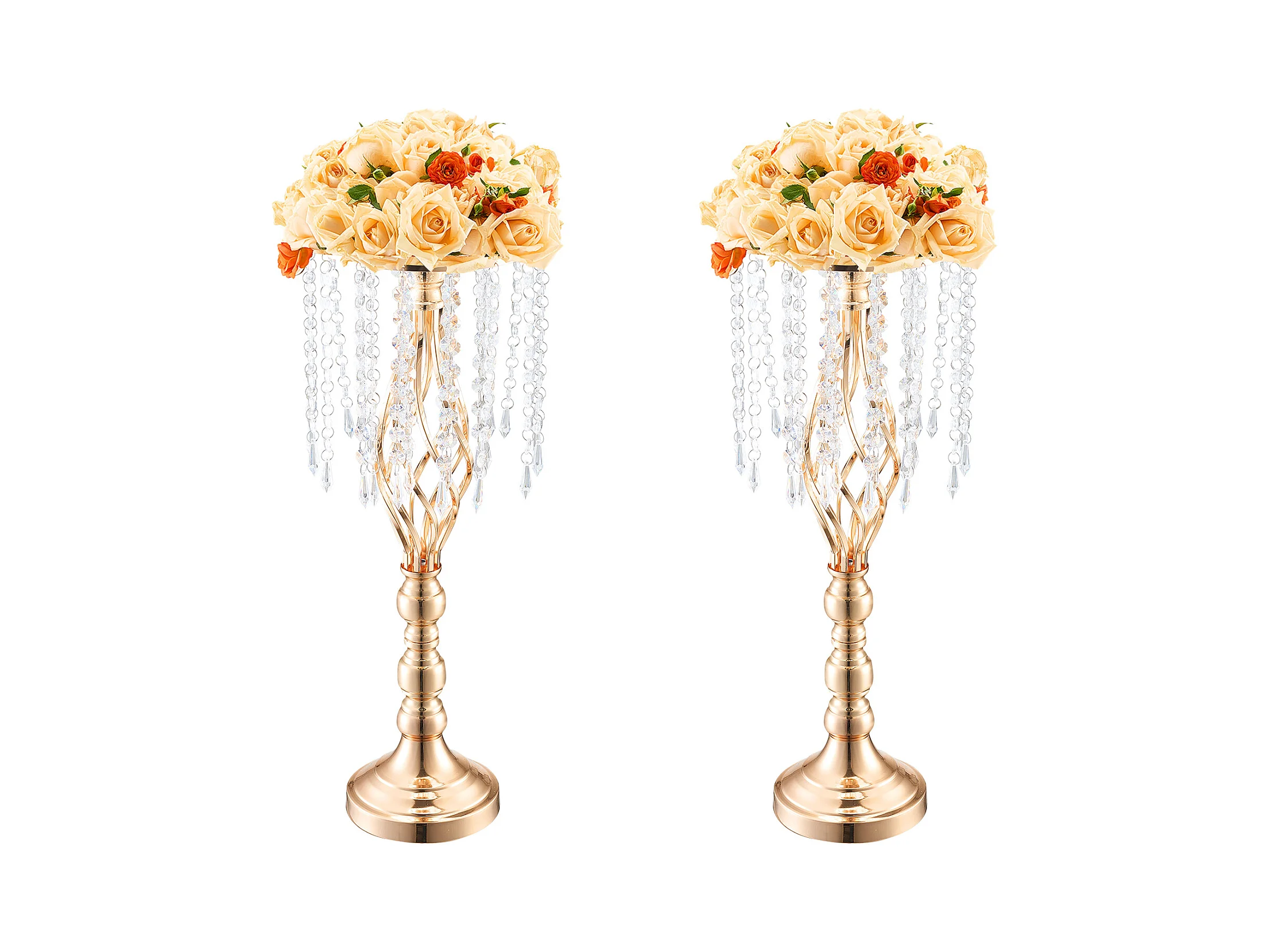 Vase SucceBuy Lot de 20 Supports de Fleurs de Mariage en Cristal de 43 cm de Haut, Vase Doré pour Décoration, Témoin de Vos Moments de Bonheur